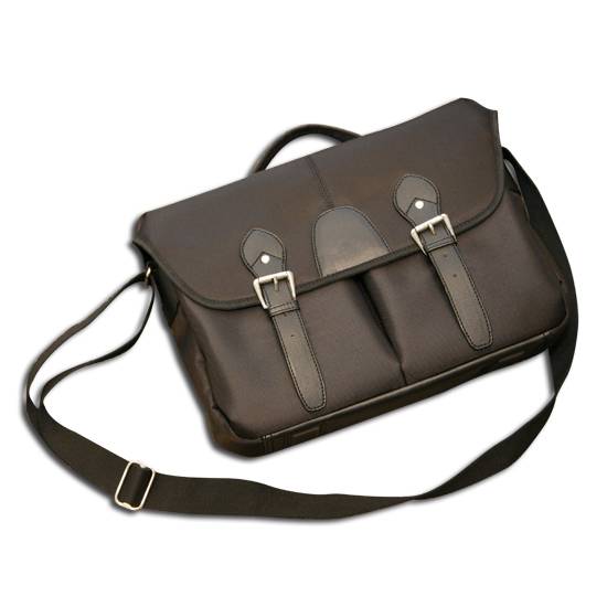 This is a black colored briefcase made with leather-like material and shinny fabric. The briefcase has 2 small compartments in the front and a big one in the middle. The briefcase is suitable for both ladies and men's use.