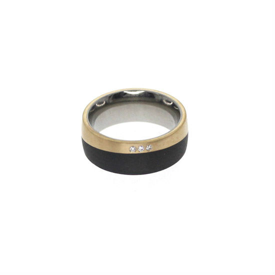 Titan ring with bronce and carbon with diaond