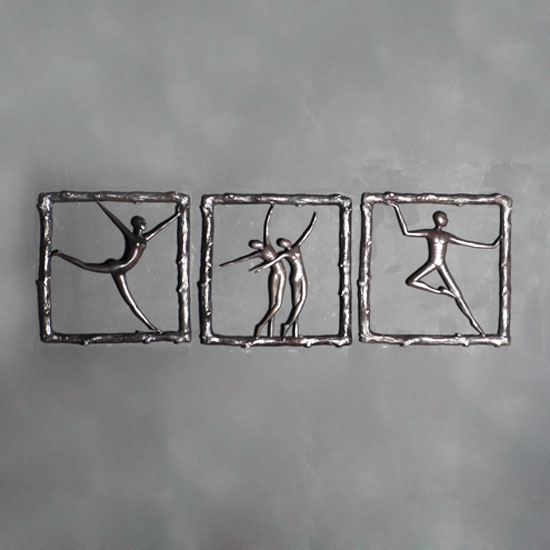 These wall decorations feature human-shaped designs enclosed in square frames. The exquisite bronze decorations feature lustrous surfaces. They add a unique touch to your tasteful room decor.