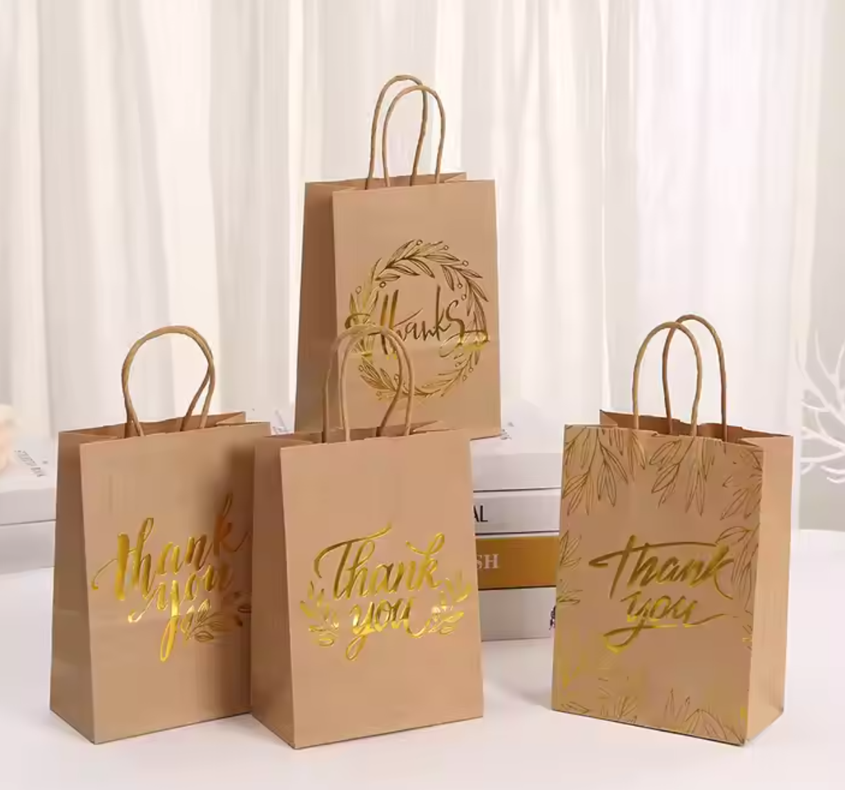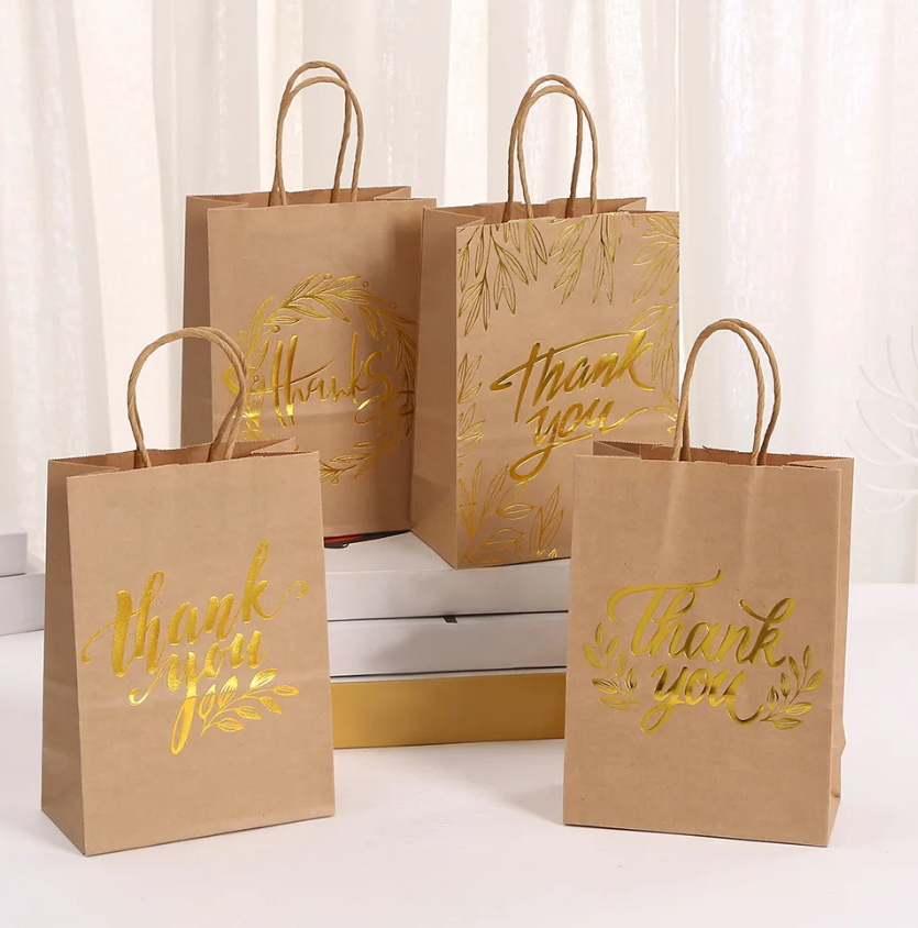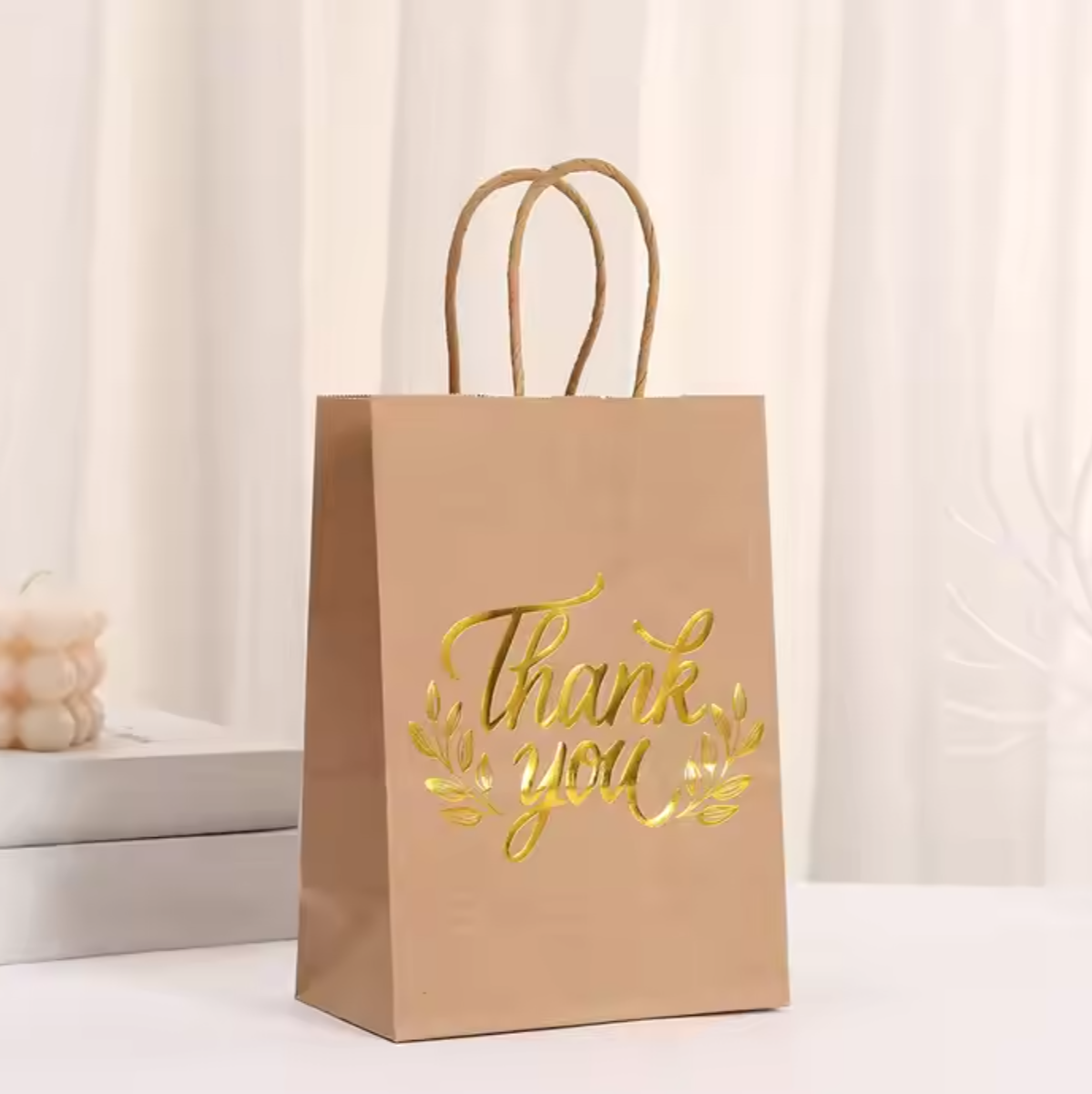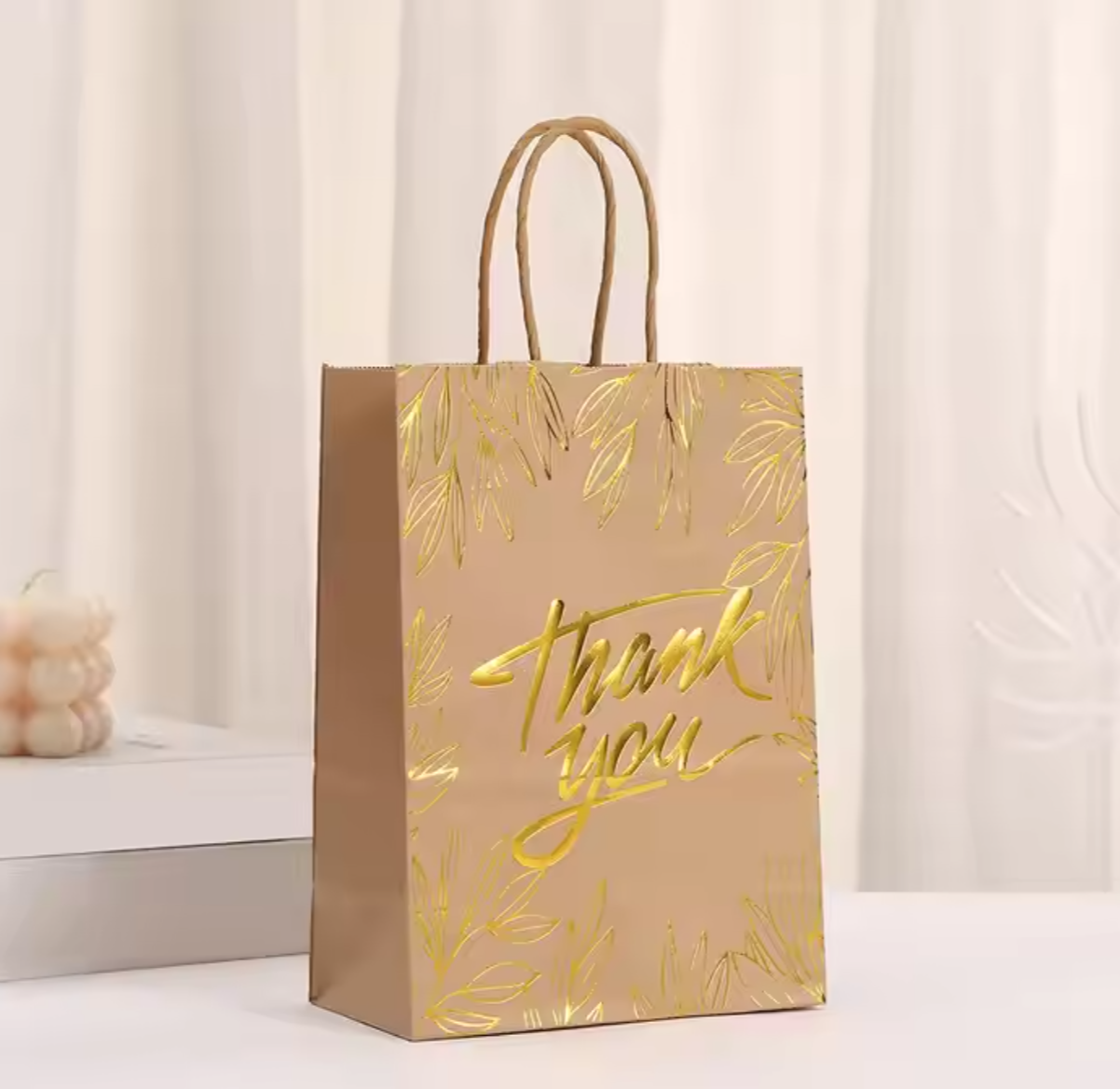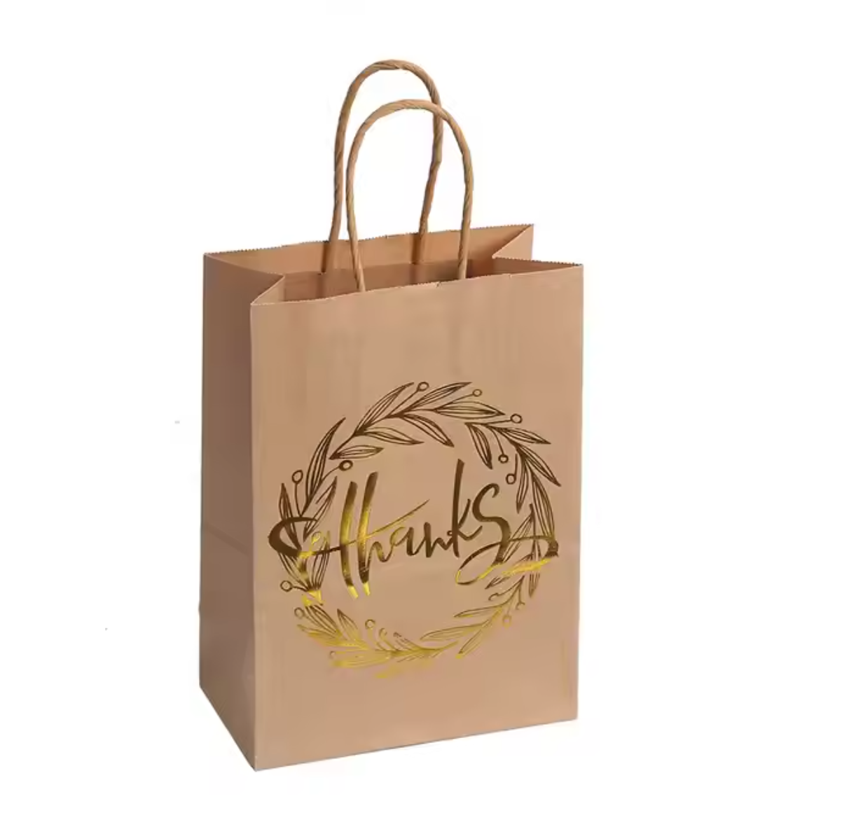Bronzed Kraft Paper Bag for Cosmetics Candy Snacks Custom Logo Take-Away Packaging with Screen Printing Surface Handling