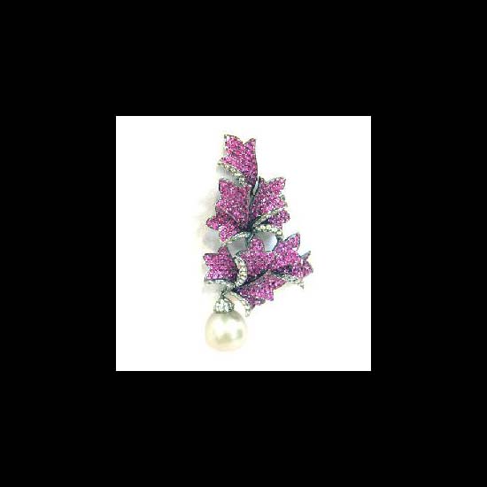 • The brooch is embellished with translucent round pink pave set and white bead set diamonds
