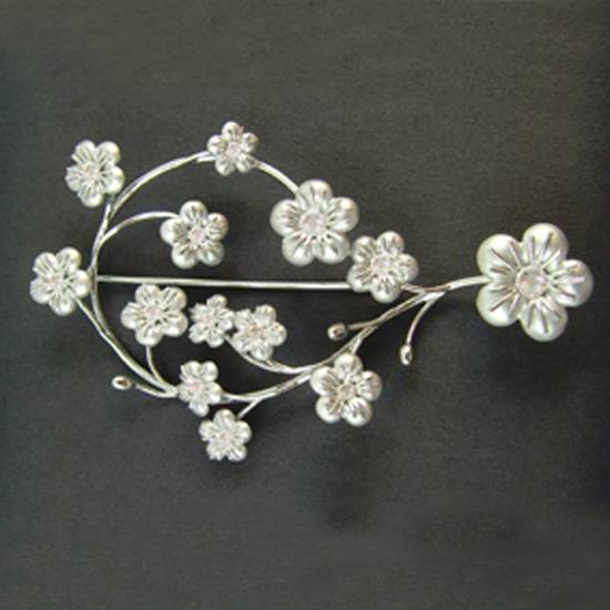 • The brooch has a composition of sterling silver and imitation diamonds.