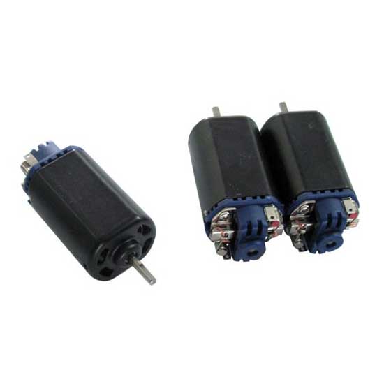 This brush motor features a solid black appearance. It is designed for use in moving toys such as toy cars. Its fine production and materials used give it a long service life.