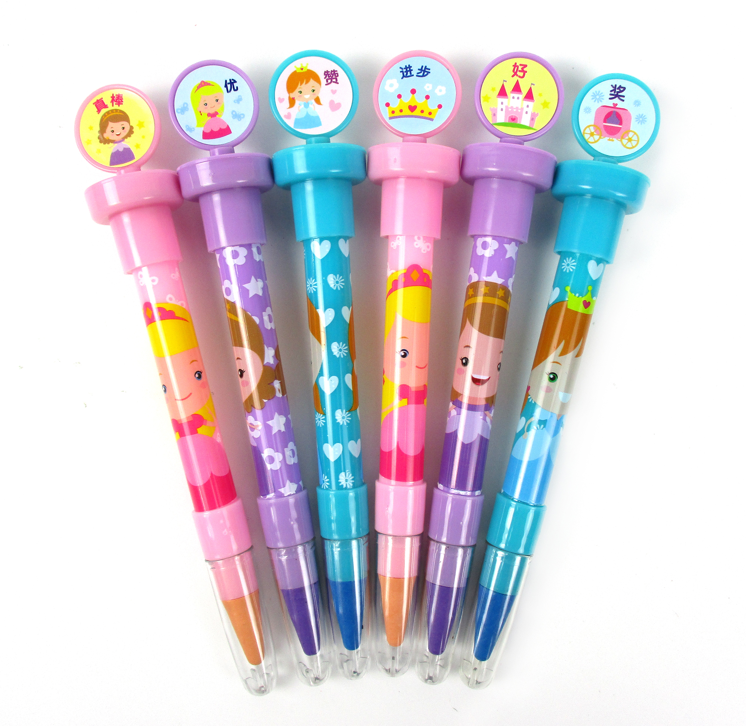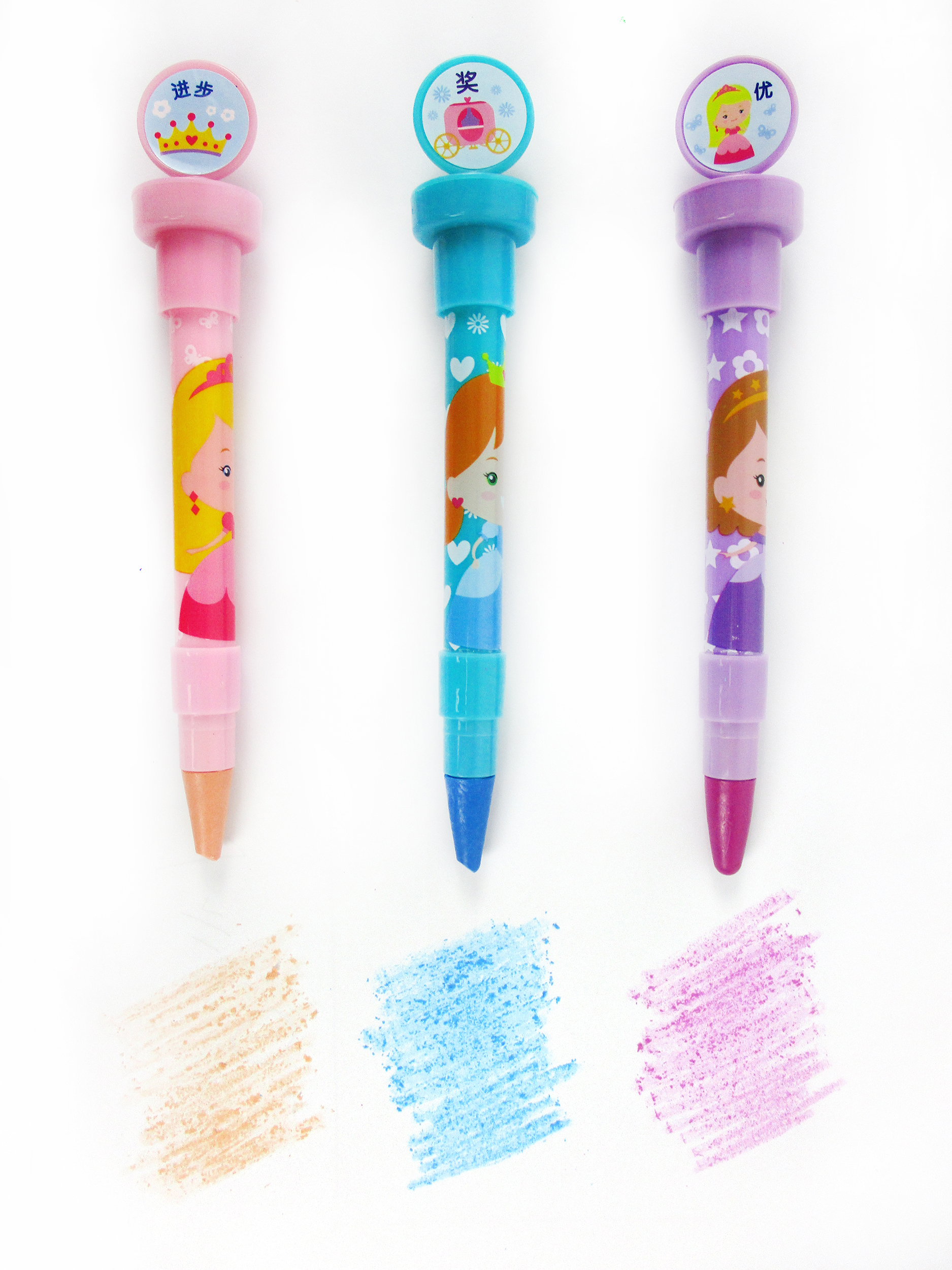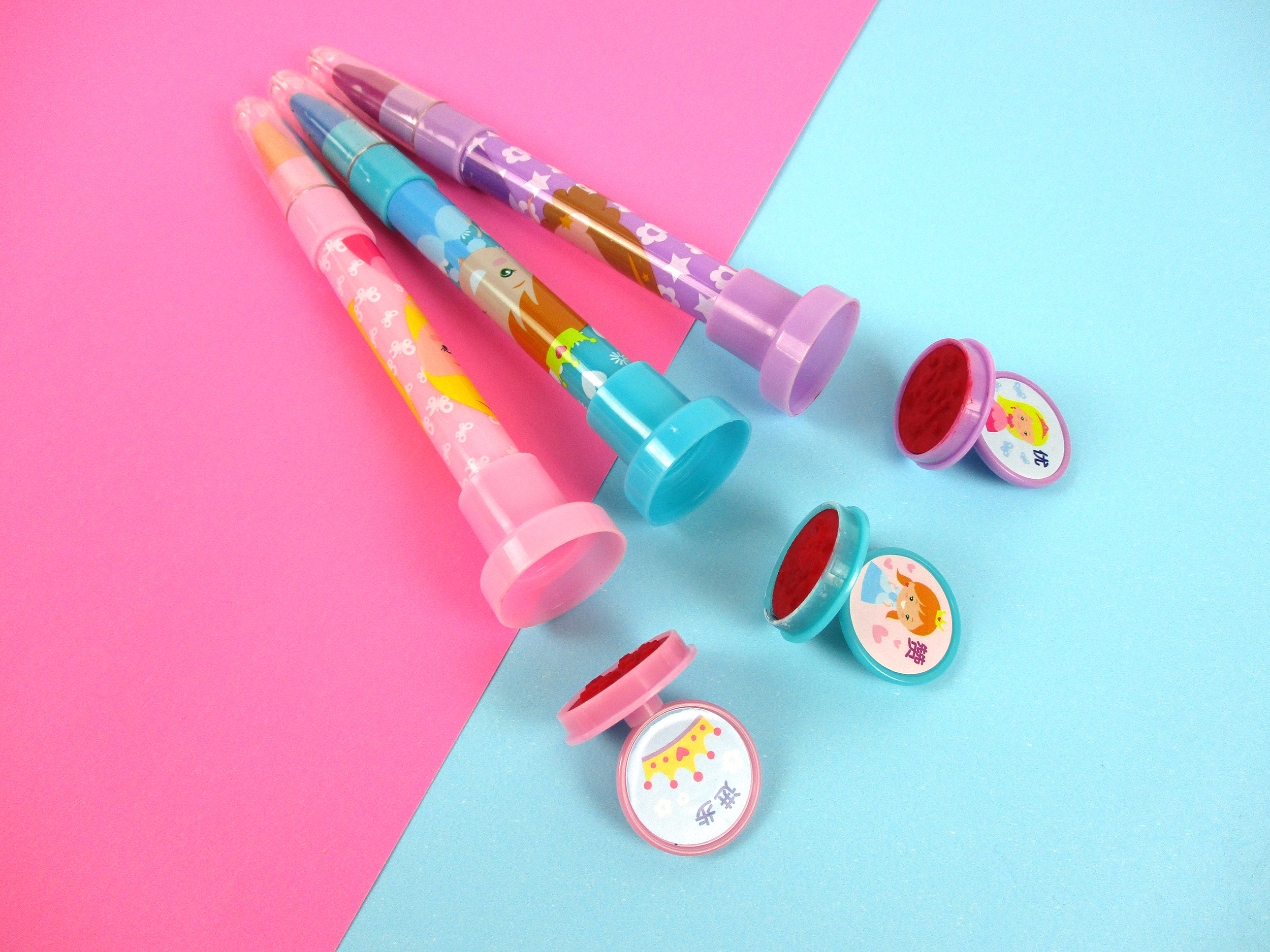 - It is a 3 in 1 coloring instrument that has a self-inking stamp, bubbles, and a crayon for coloring.
