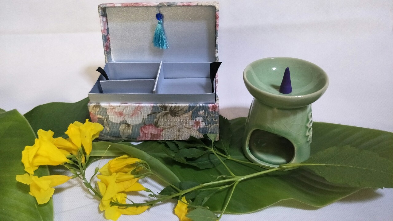 • Treasure box with the incense cone, incense stick and incense holder.