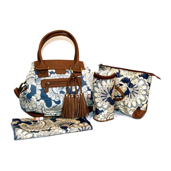 This 4-piece bucket nappy bag set is comprised of a large purse to hold nappies, wipes and creams, a large padded change mat, a single insulated bottle holder and a bag. Designed with an adjustable shoulder strap, the nappy bag and the bottle holder can be carried over the shoulder, across the body or hung on the pram. This versatile 4-piece bucket nappy bag set is an ideal choice for fashionable mums.