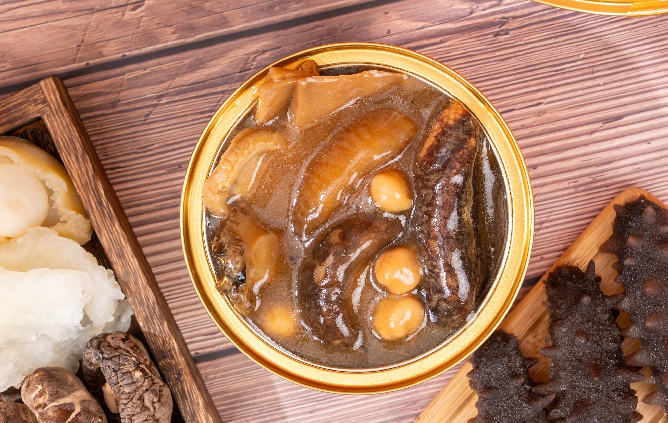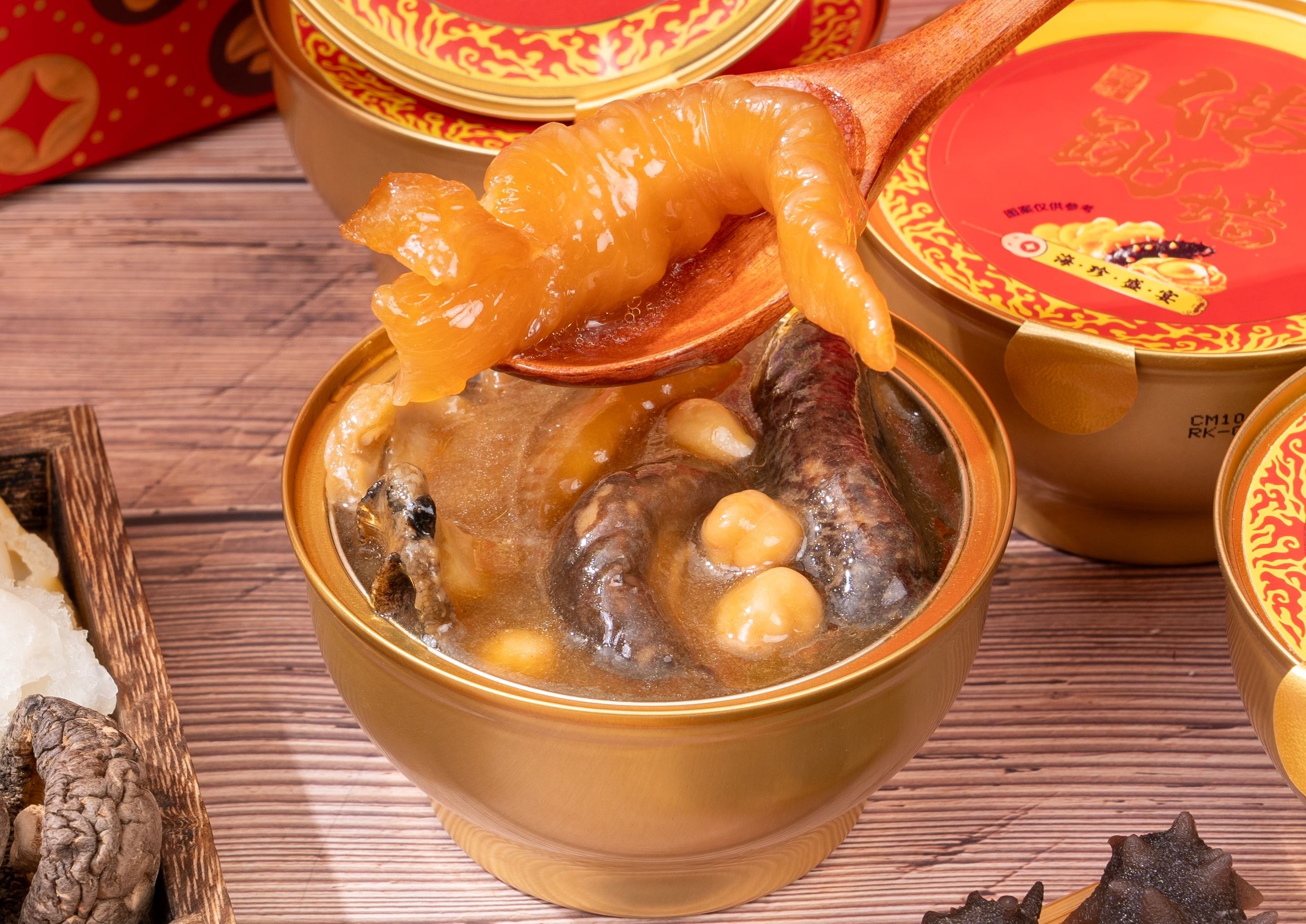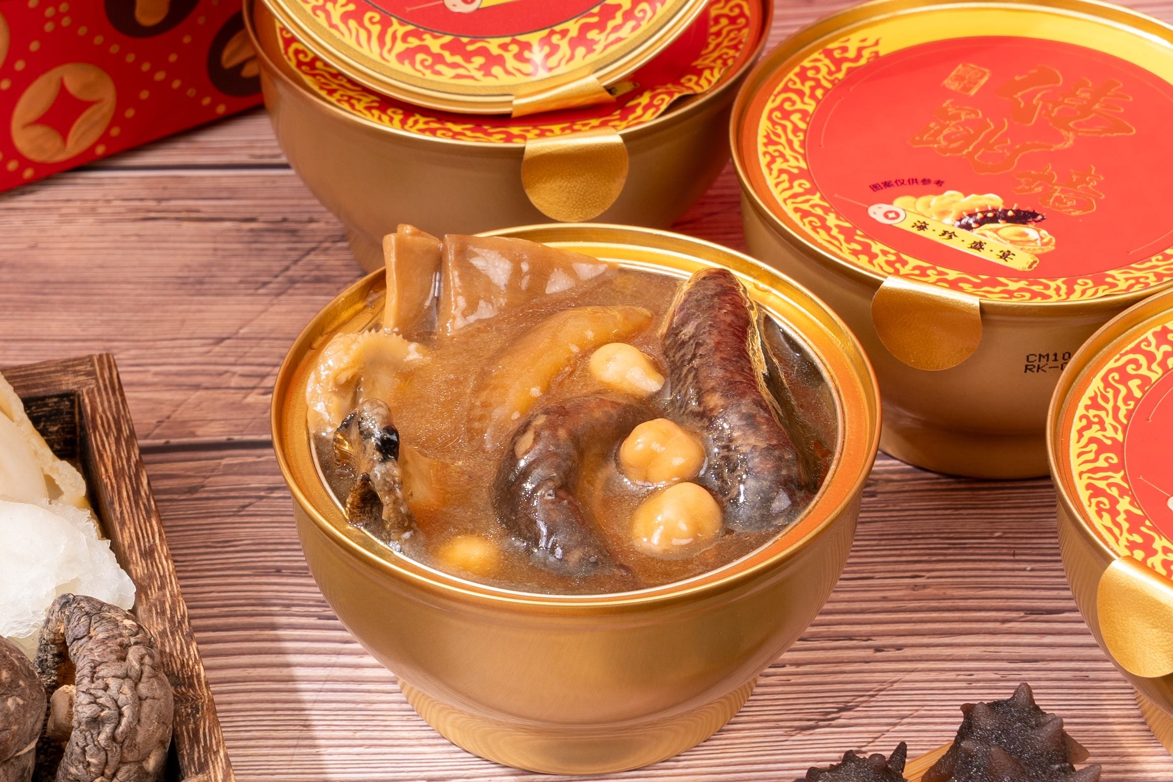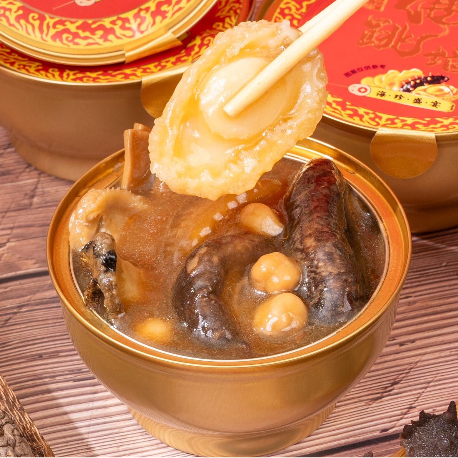 Abalone Sauce Buddha Jumps Over the Wall is a premium ready-to-eat delicacy crafted with abalone sauce, sea cucumber, fish maw, mushrooms, and other nourishing ingredients. Rich in collagen, protein, and essential nutrients, it supports vitality, skin health, and post-recovery wellness. Long shelf life, no preservatives, easy to heat and serve. Ideal for festive occasions or daily nourishment.