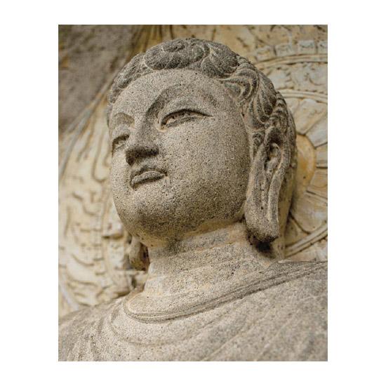 This statue shows a lively and solemn expression of Buddha. It is carved with skillful craftsmanship for delicate details. This exquisite decoration has a robust construction suitable to be placed outdoors.
