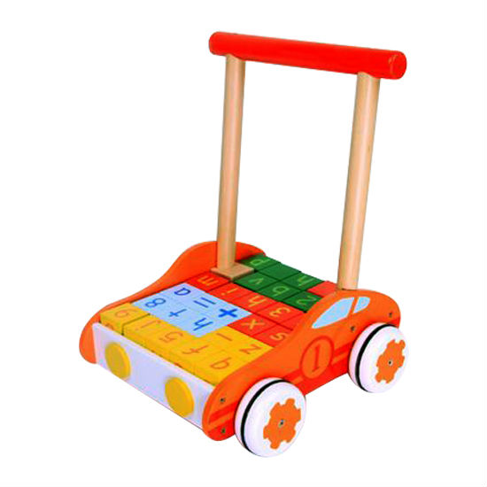 Let your kid enjoy countless hour of play while learning to walk with this building block baby walker. The highlighted activity walker features a racing car design with four contrast wheels and handle installed in front of the back wheels for extra stability. Included also is a set of colorful blocks with alphabets, numerals and arithmetic signs which helps your little one to develop early letter and number recognition.