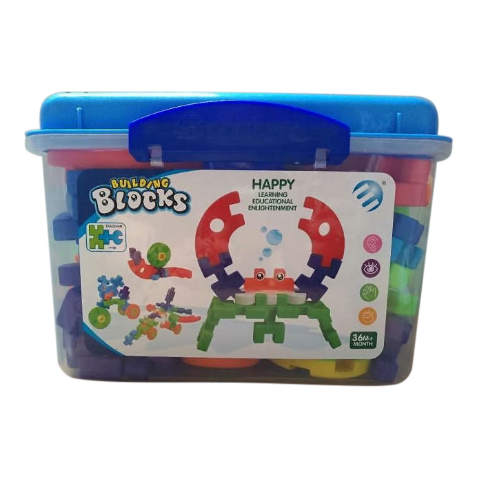 Educational and puzzle toys. It can help child to improve imagination and operational ability. Blocks are made of ABS material. MEAS size is 112x26x74cm. Each set is packed with PVC bag.