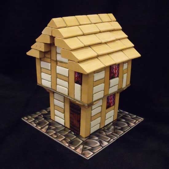 Displayed is a model house coming with a Medieval design. It actually consists of plenty of blocks for players to assemble. The fully assembled piece will offer players a sense of satisfaction while making a stunning item for display.