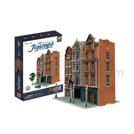 This building model set features three buildings of auction houses and stores. It is designed to incorporate as much details as possible to replicate a streetscape. Each building piece is crafted with unique interlocking designs for easy construction.