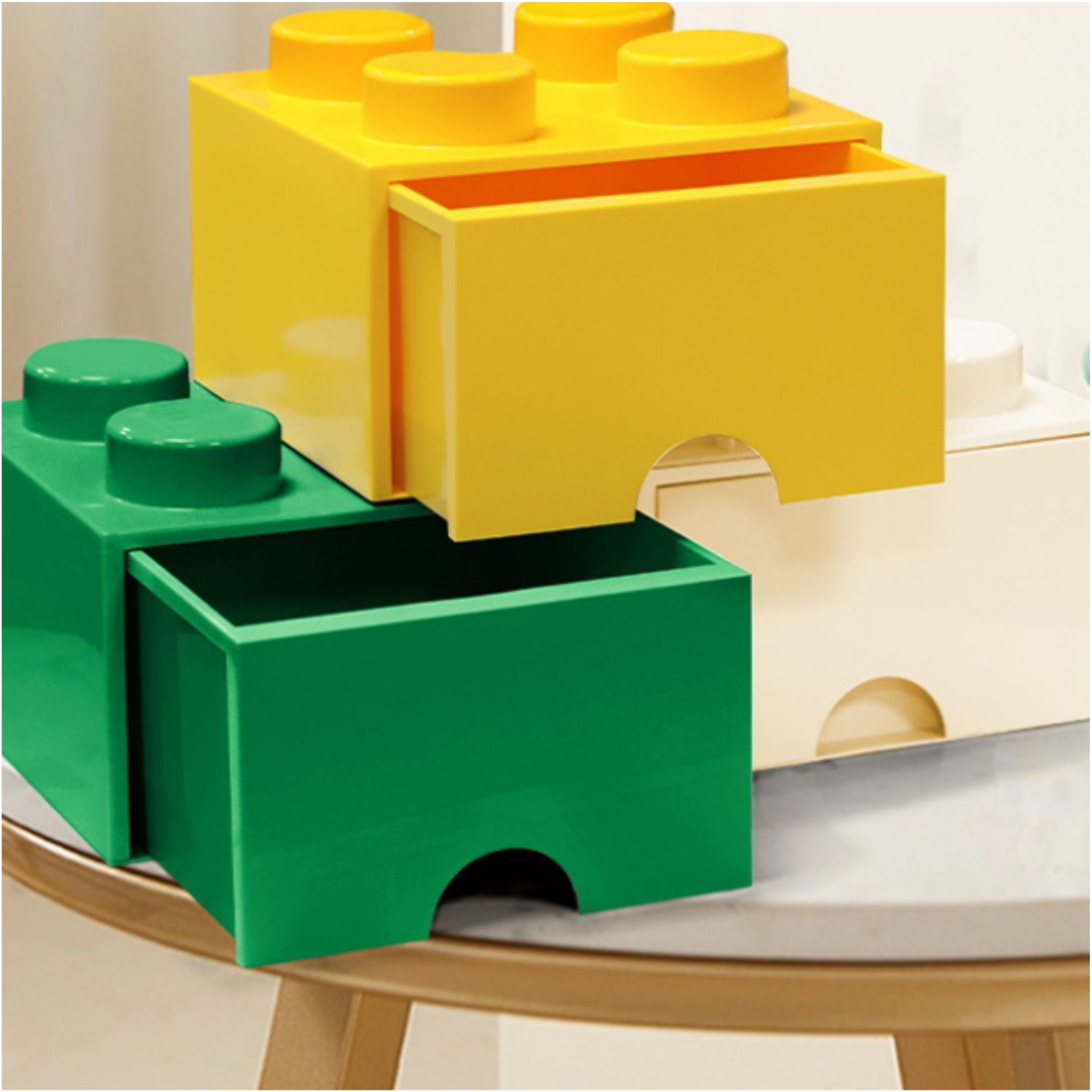 Encourage kids to have their playroom neat and tidy with fun containers for their bricks, keeping them off the floor and out of sight
