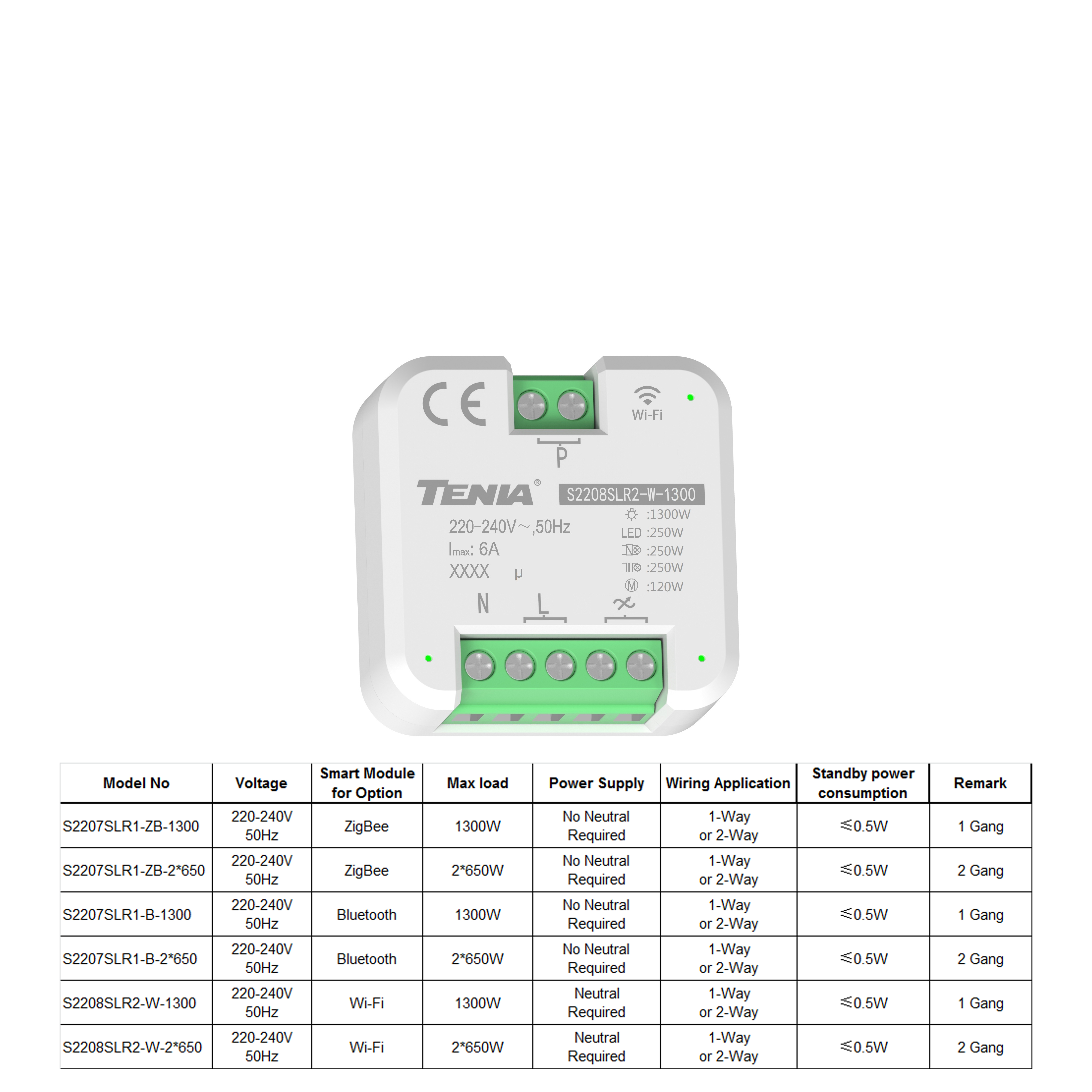 Built-in Smart Switch with Wifi/Zigbee/Bluetooth connection function, TUYA APP, can set and control the light on or off by self-reset switch or APP remotely. Support Alexa and Google Home for voice control. Small size, flexible application. The product can be connected with one or more self-reset switches to control the lamp.