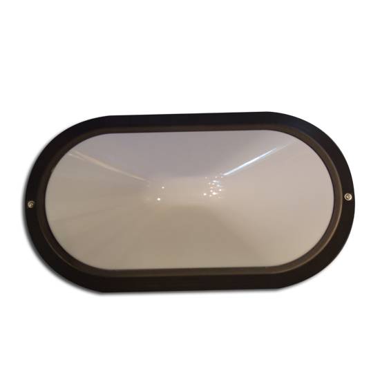 This is a bulk head which is used for outdoor lighting. The bulk head with simple design is made with black ellipse outer frame for protection. The lamp cover is made of white plastic which can even the light penetrates it.