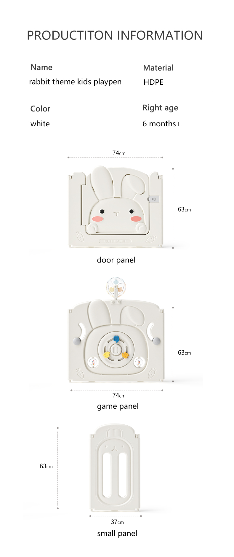 Bunny Theme safety baby playpen plastic game board style children play