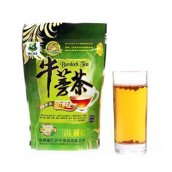 Displayed is a box of burdock tea that is made of high quality burdock. Professionally processed, this burdock tea retains its natural nutrients and is good for the body, including enhancing the immune system. This burdock tea is a great choice for everyday life to stay healthy.