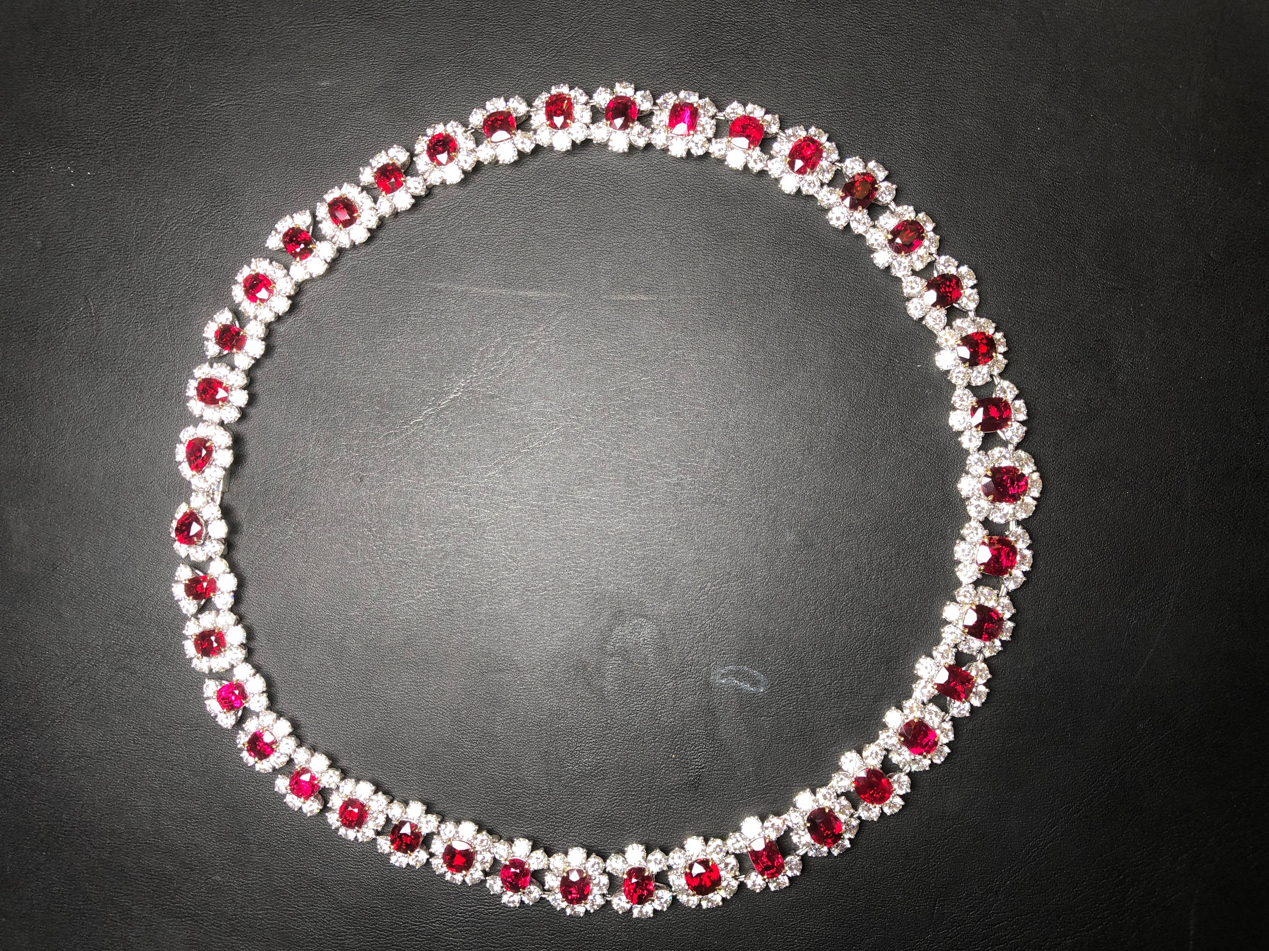 Burmese ruby necklace, Gubelin Gem Laboratory pigeon blood rating, the total weight of the main stone 50.69 carats, a single stone more than 1 carat