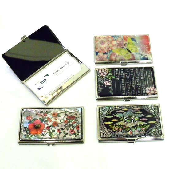 Featured here is a business card case with a unique and artistic design that conveys a sense of luxury. The stainless steel construction with a fine color print ensures long-lasting beauty. This business card case is great to showcase a different style.