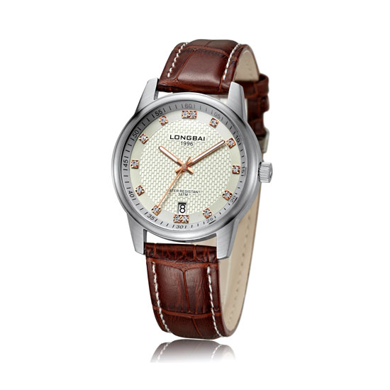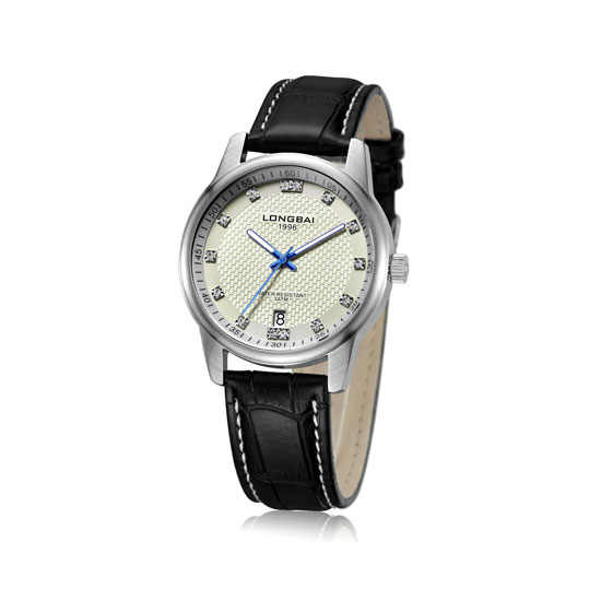 This watch features a silver matte stainless steel case, embedded with a branded, textured dial with embellishment markers, three hands and a date wheel. The watch is equipped with a Japanese movement for excellent punctuality. Supported by a genuine leather strap with nicely-stitched edges, this wristwatch delivers a chic business style and perfectly matches your formal and preppy casual outfits.