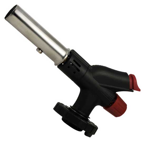 The butane gas torch is fitted with a stainless steel burner tube. Its flame intensity can be adjusted easily to fit your needs. This torch employs a standard butane cartridge or propane gas cartridge.