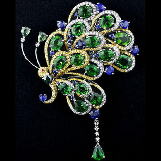 This luxurious brooch comes with a butterfly design for an attractive look. It is finely crafted with sapphires, tourmaline stones and diamonds for added elegance. This sapphire diamond brooch will surely make you stand out from the crowd.