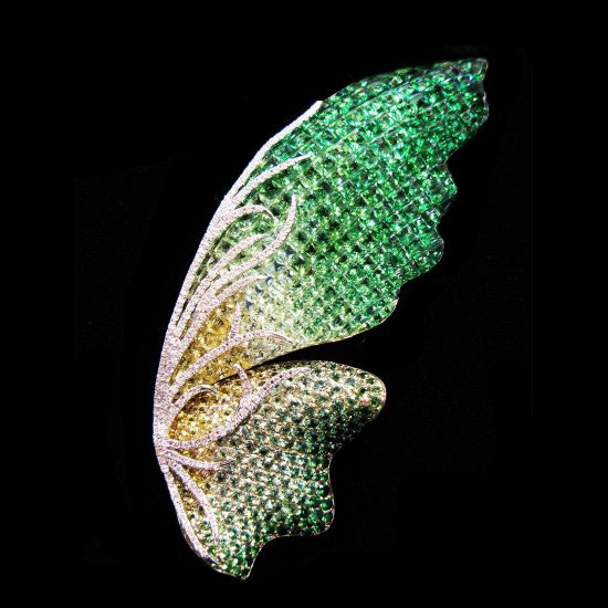This amazing brooch is styled into a butterfly that awaits to spread its wings and fly. A collection of precious gems are set in 18K white gold for extraordinary gorgeousness. The brilliant glimmers in multiple colors will surely captivate your heart.