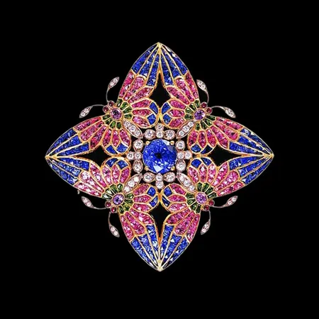 This butterfly brooch is a beautiful Art Nouveau inspired masterpiece. It depicts four butterflies facing outwards for a unique design. This gorgeous brooch steals the limelight at the evening functions effortlessly.