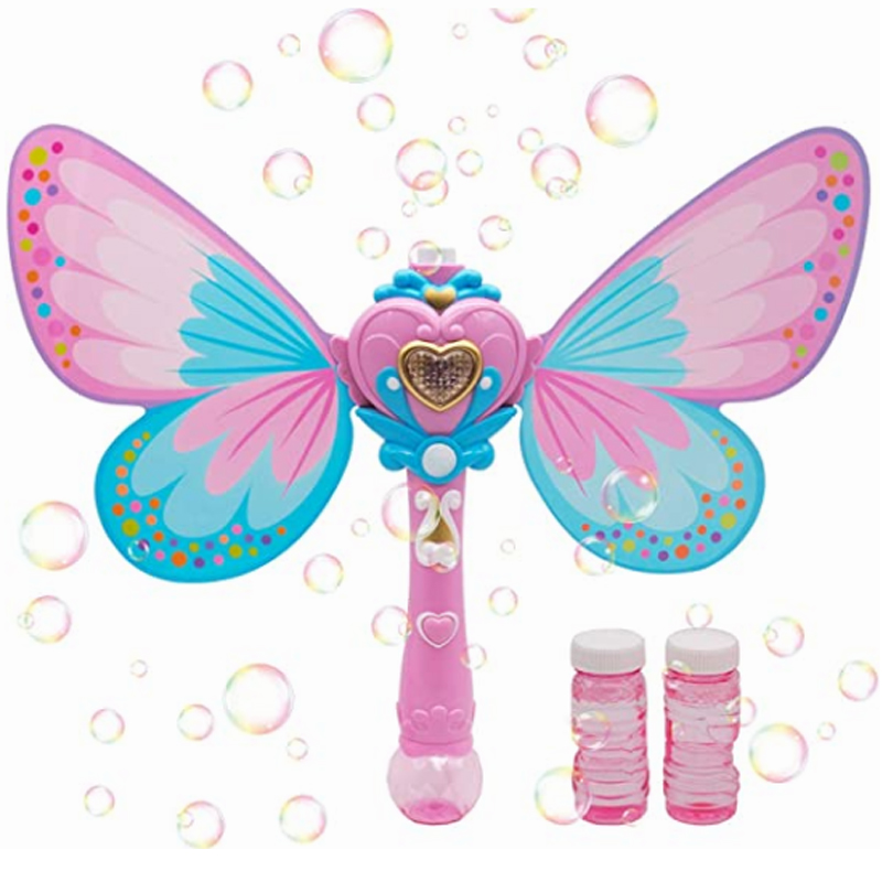 [ SAFETY AND GORGEOUS APPEARANCE ] Safe and kid-friendly materials are mom’s first choice. Our bubble machine is made of eco-friendly and non-toxic ABS plastic that is high quality and durable. The bubble solution has passed safety tests and is safe for kids. The beautiful 3D butterfly bubble blower will easily attract children’s attention. Ideal bubble machine for toddlers.