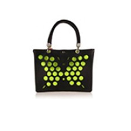 This handbag features die-cut details that form the shape of a butterfly. The butterfly comes in a neon-green color for an eye-catching look. This fashionable handbag is best matched with fancy, head-turning one-piece floral dresses.