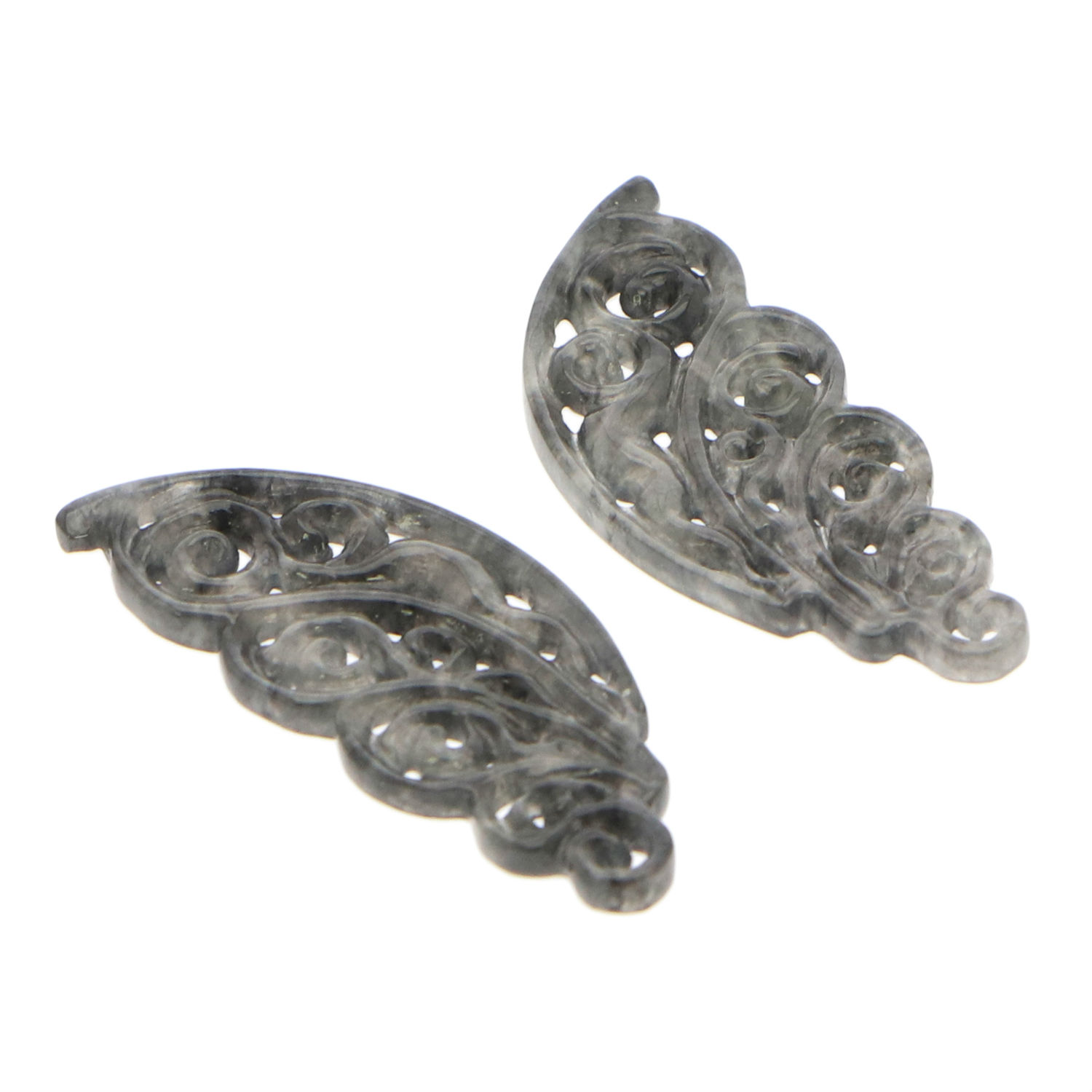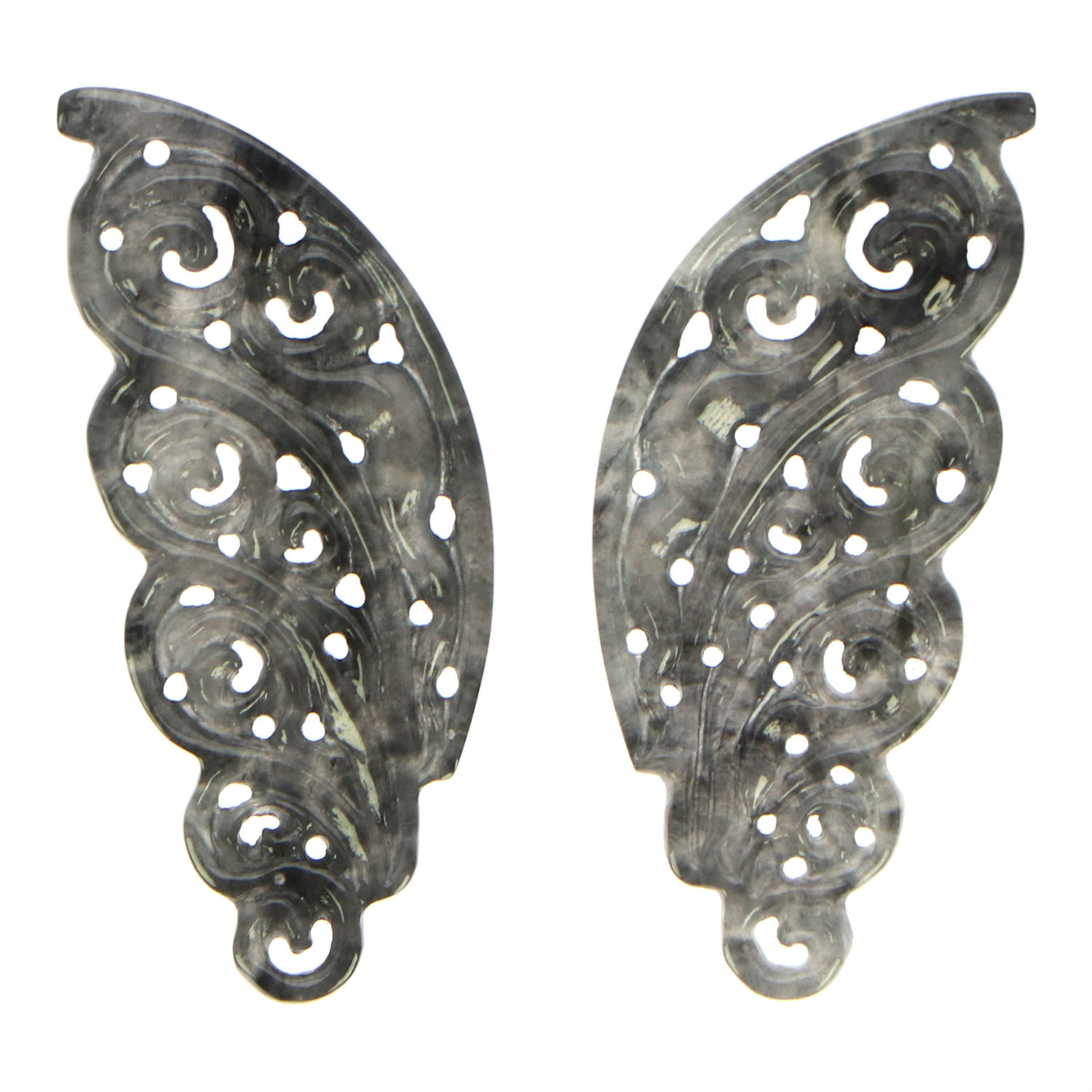 Up your style game with these black jadeite jade earrings. Crafted from natural black jadeite jade mined in Myanmar, this pair displays a beautiful mottling of blackish hues for an exotic and mesmerizing appeal. The precious stone is handcrafted into a pair of butterfly-shaped earrings filled with skillfully arranged swirl patterns that bring an oriental and intriguing air to evening edits. Stunning from all angles, this beautiful number pairs exceptionally well with silk gowns and feminine numbers.