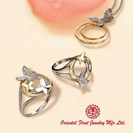 The jewelry collection comes with a pair of rings and a necklace. The jewelry set is finely made of gold with romantic butterfly motif. Featuring sparkling diamonds, the jewelry collection is surely an attractive addition to your wardrobe.