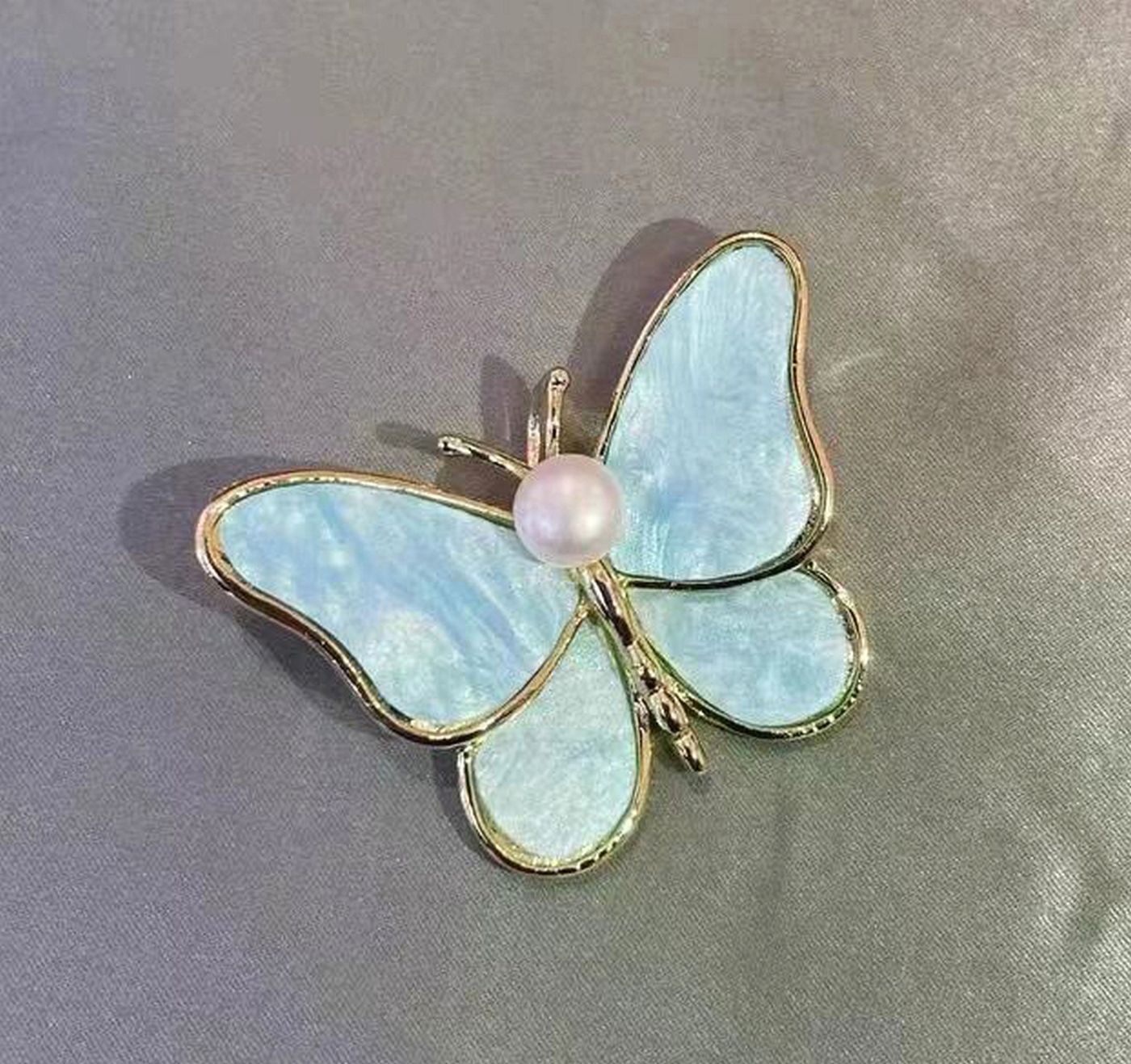As shown is a high-fashion butterfly style gold plated alloy parts brooch.