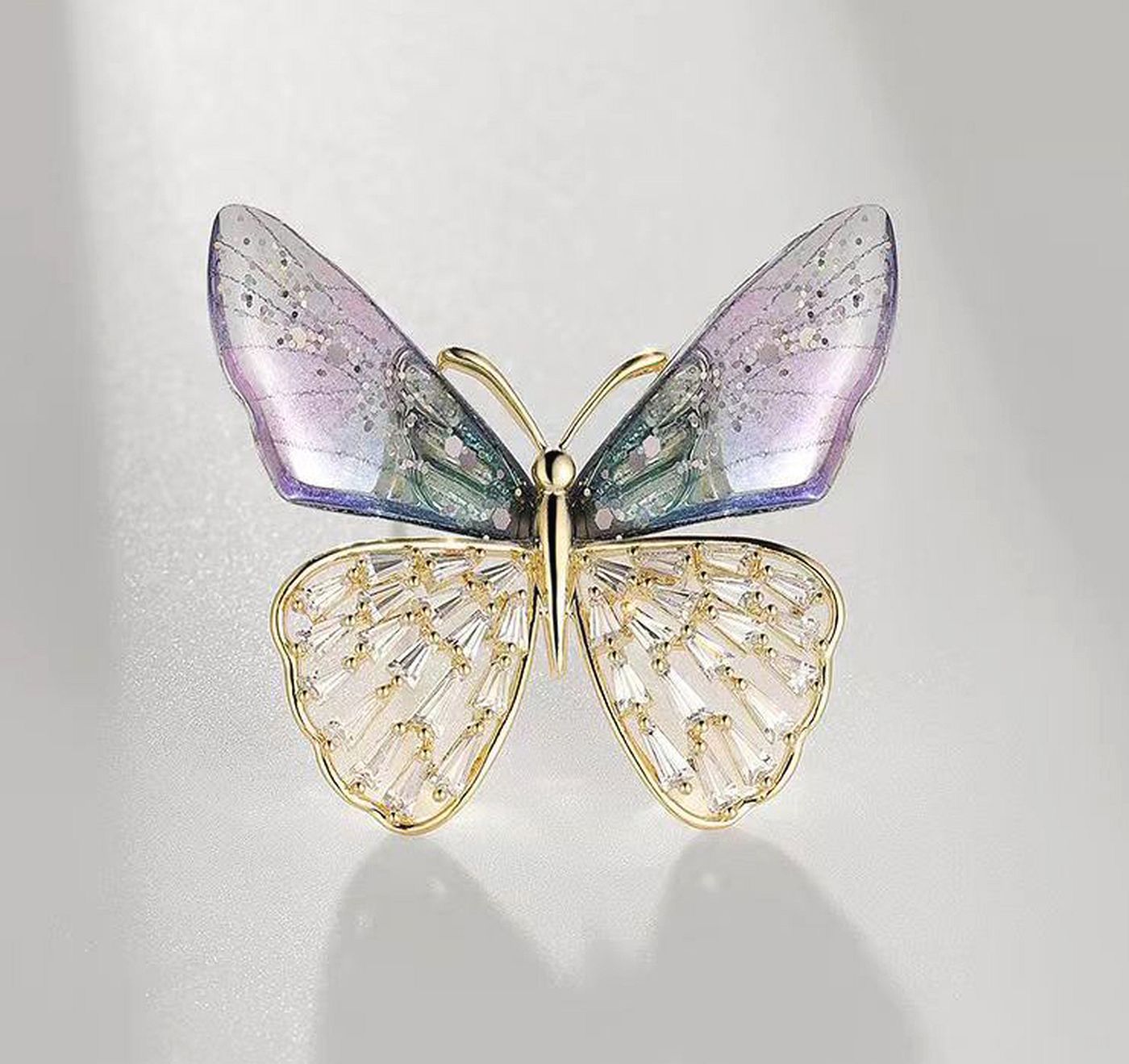 As shown is a high-fashion butterfly style gold plated alloy parts brooch.