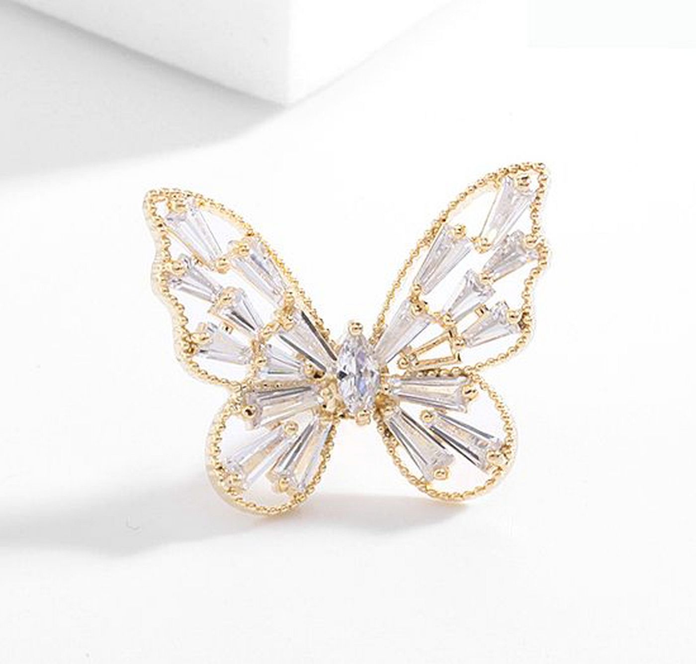 As shown is a high-fashion butterfly style crystals golden plated alloy parts brooch.