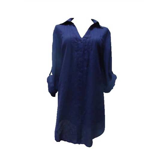 This button-up blouse comes with a long body for a unique design. It features a V-neck with a collar in elegant style. The striped front adds style to the blouse. Complement your wardrobe with this glamorous blouse.