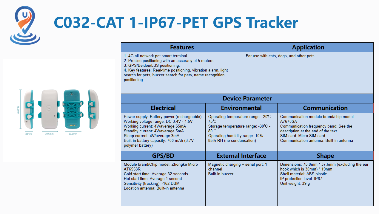 C032-CAT 1-IP67-PET GPS Tracker