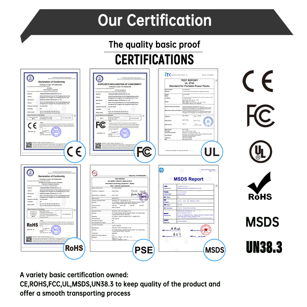 •Certificate:UL2743、CE、LVD、RoHS、FCC、MSDS、UN38.3
