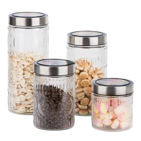 CCP056TYT Glass Food Storage Jar With Acrylic Stainless Steel Lid and Embossed Sunflower Design