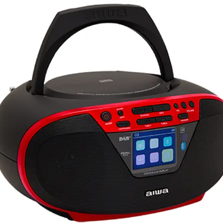 A stylish modern boombox with a full-color 2.4" TFT-LCD display, Bluetooth 5.0, high dynamic range speakers, and multiple playback options including CD, USB-MP3, and radio.