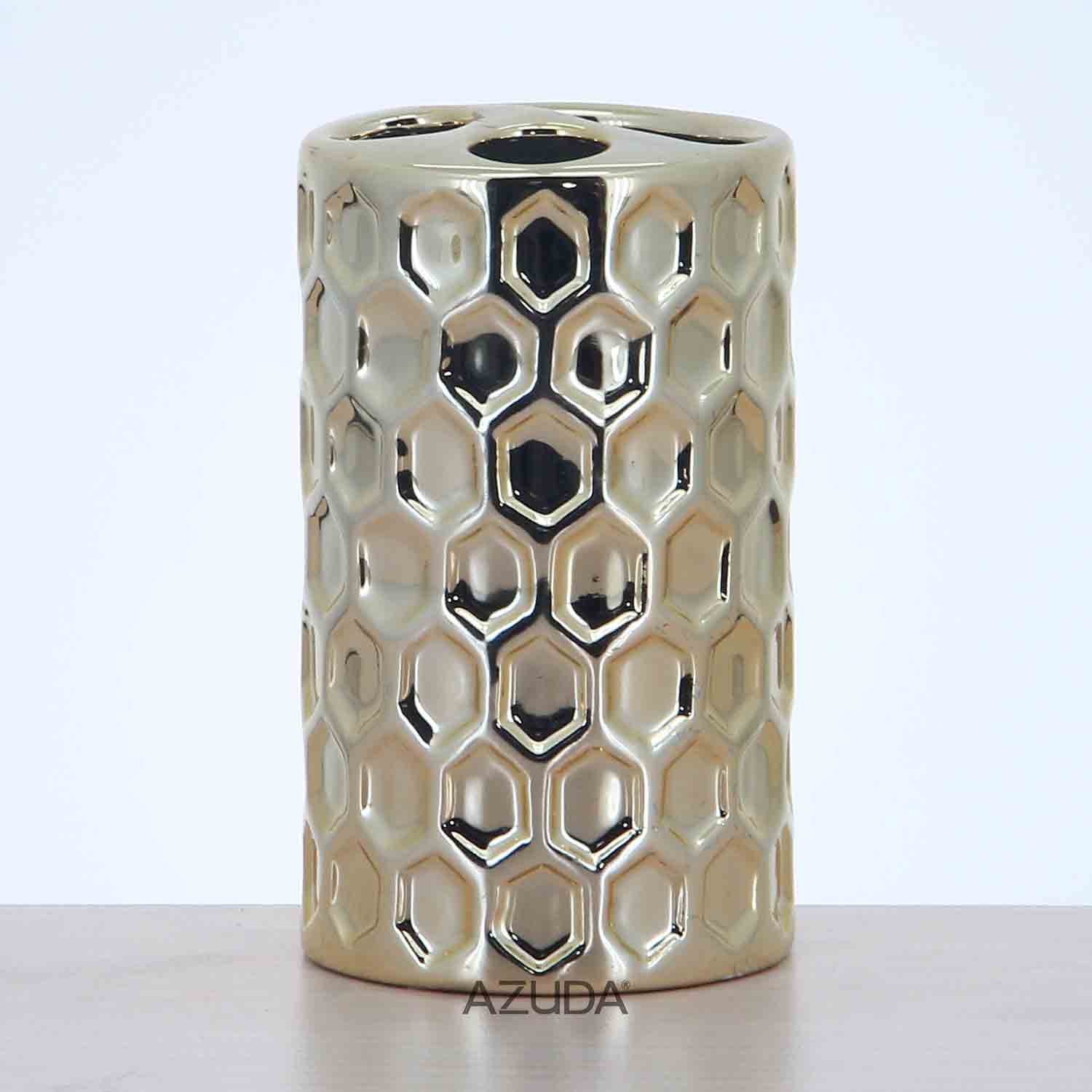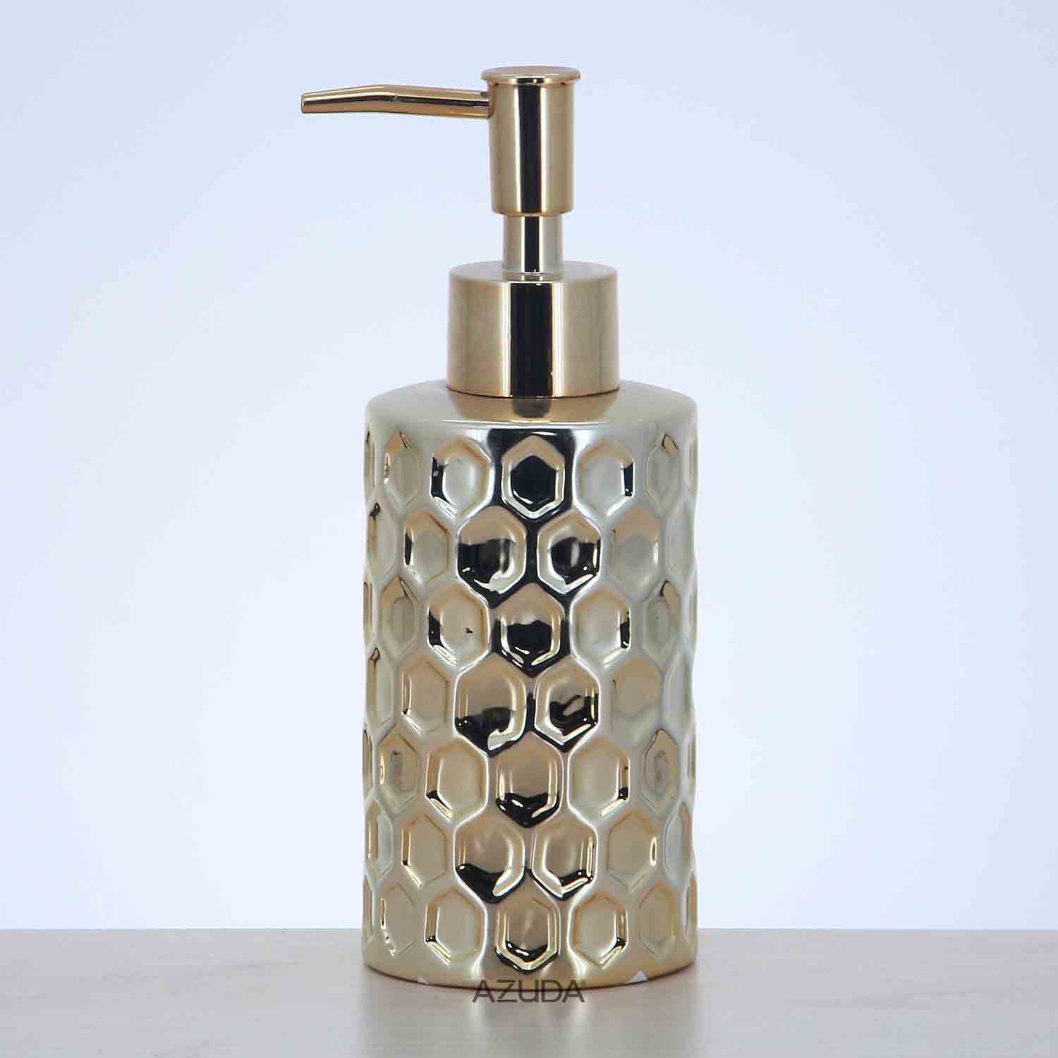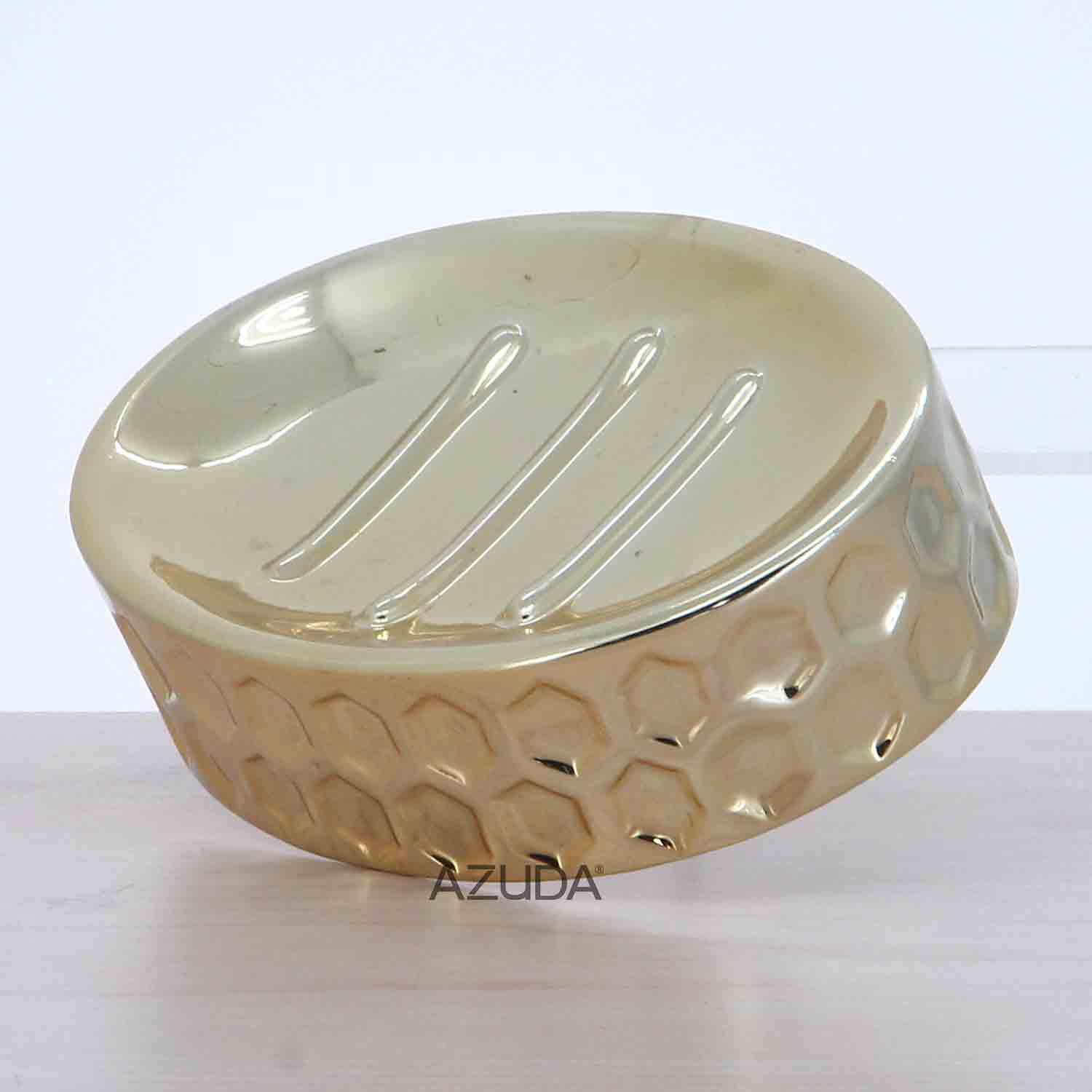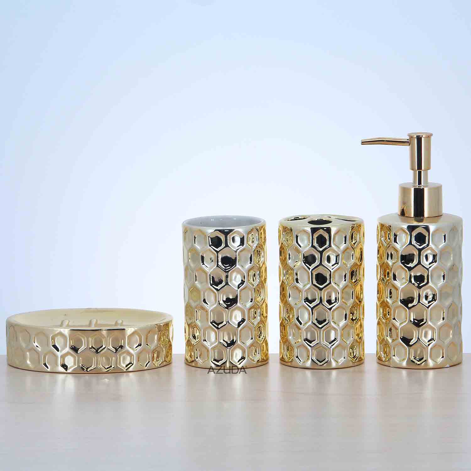 CERAMIC BATH SET GOLD PLATED HONEYCOMB DESIGN