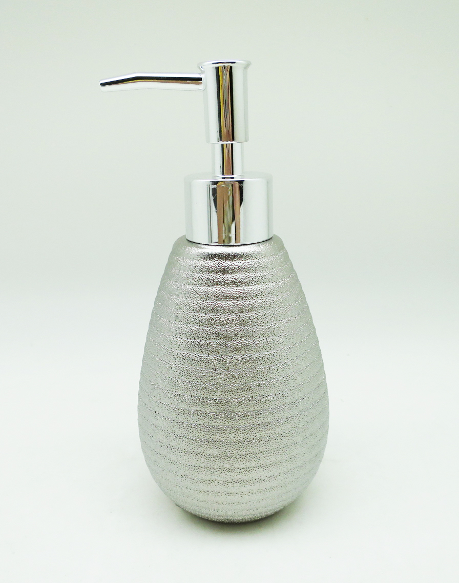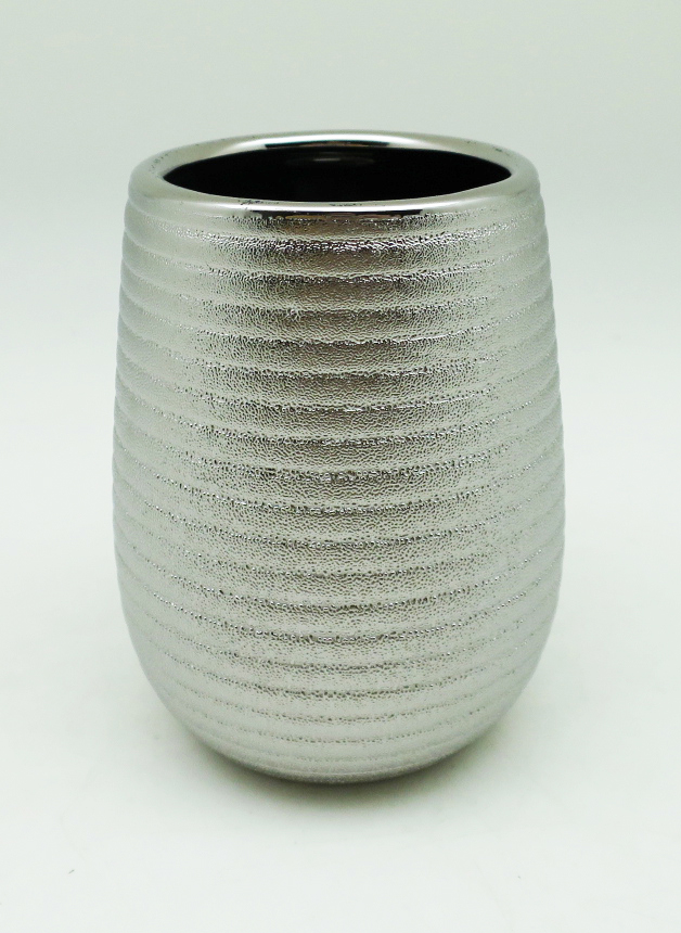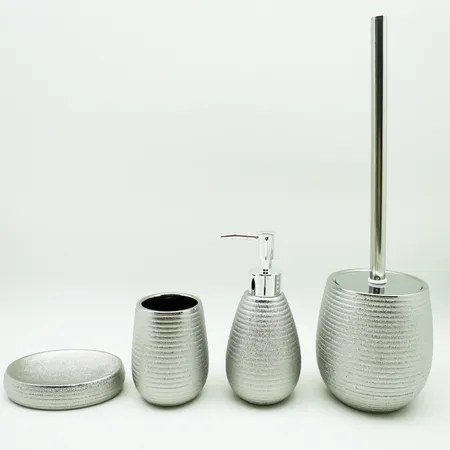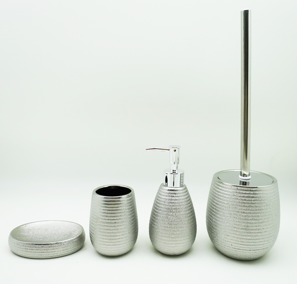 CERAMIC BATHROOM ACCESSORY SET RIBBED DESIGN IN SILVER FINISH
