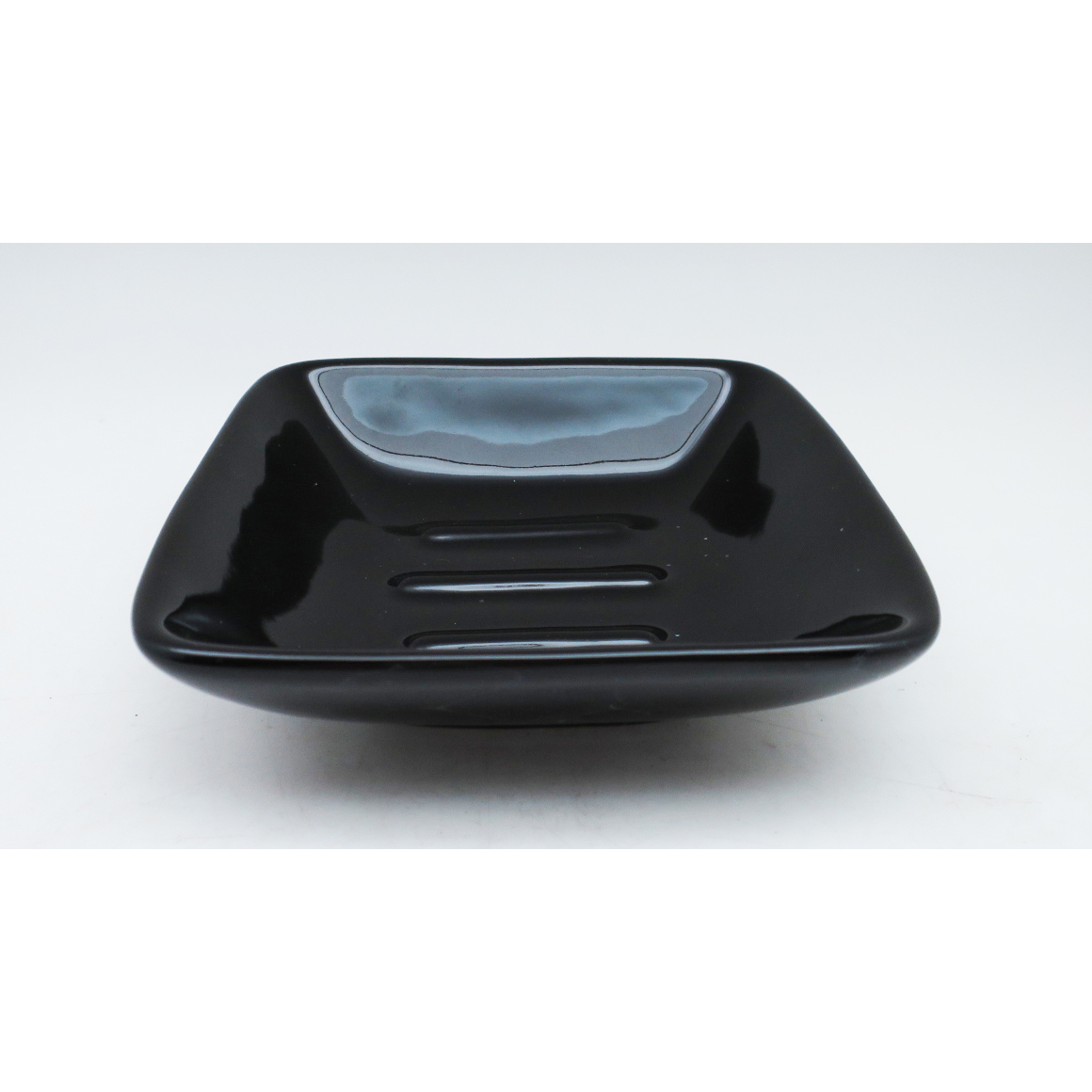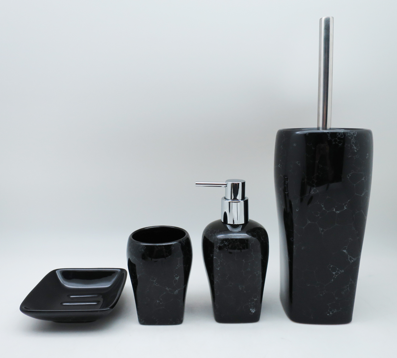 CERAMIC BATHROOM ACCESSORY SET W/BUBBLE GLAZE IN BLACK