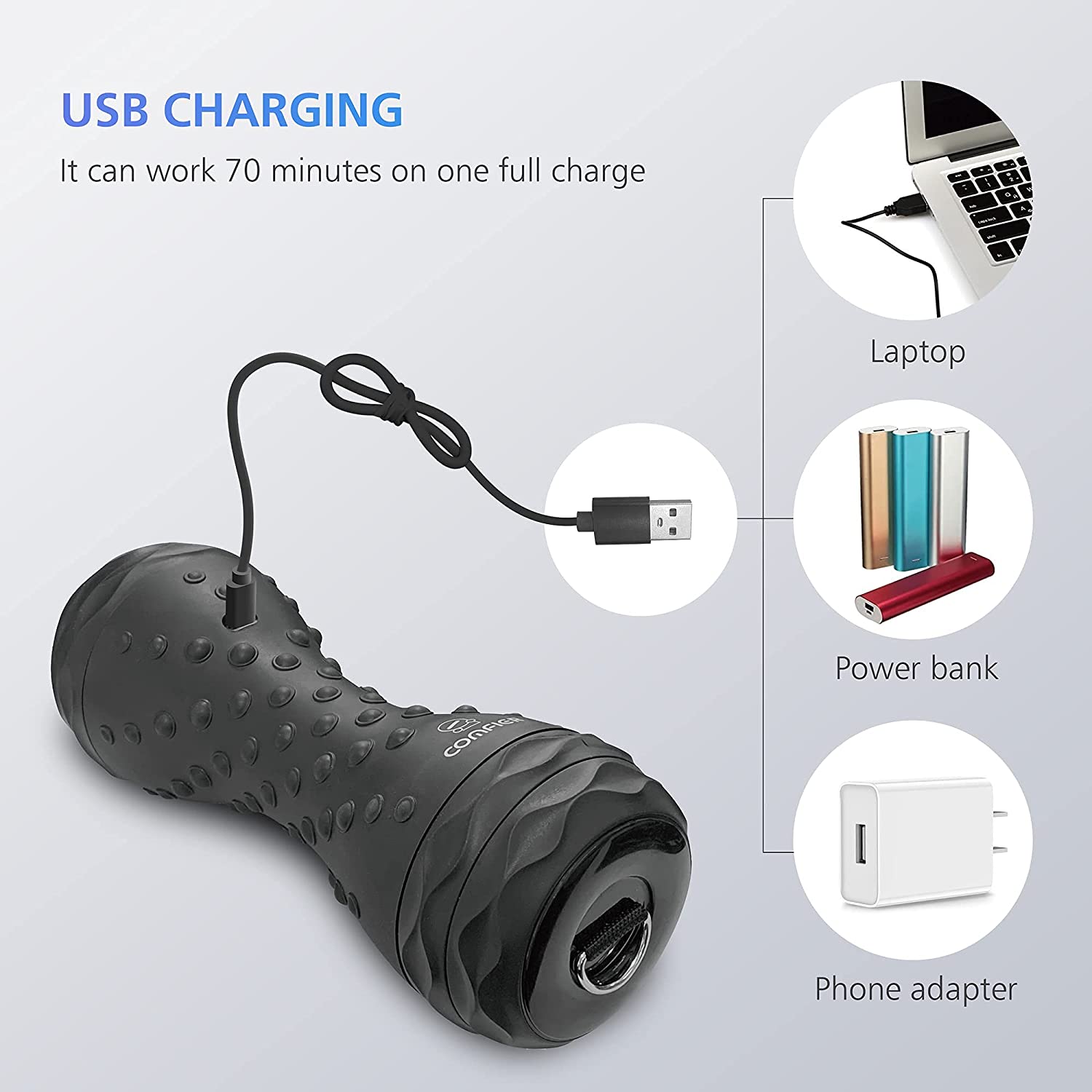 Powerful internal lithium-ion batteries that lasts up to 70 minutes of continuous vibration.