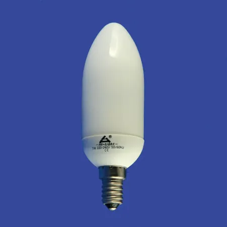 Displayed is a CFL bulb with a candle style lamp cover. The CFL candle produces 300lm of lumen, offering optimal illumination. The CFL candle can work in normal operation conditions, making it a reliable choice for ordinary use.