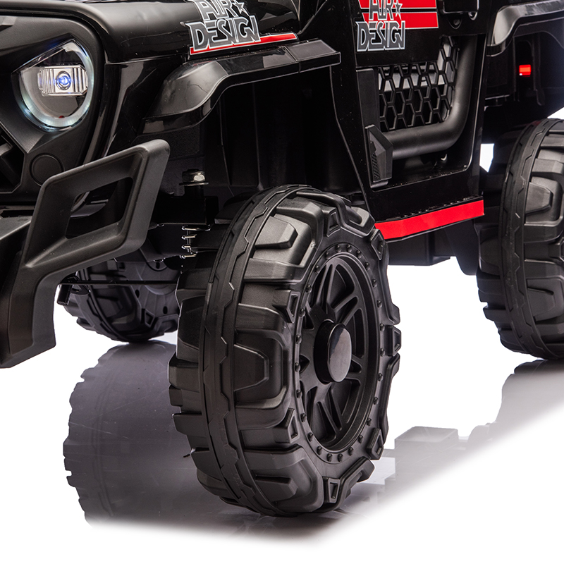 Both front and rear wheels are equipped with spring suspension system to ensure a safer and a super smooth driving experience for kids.Soft start technology of the kids ride on truck and prevents children from being frightened by sudden acceleration or braking, parental remote control, seat belt, and double lockable door design offer maximum safety for your kids.