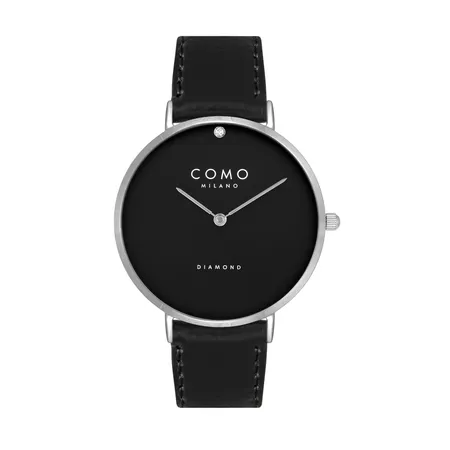 Round case, black and diamond dial, 36mm in S/S with "made in italy" genuine leather black strap , diamond collection