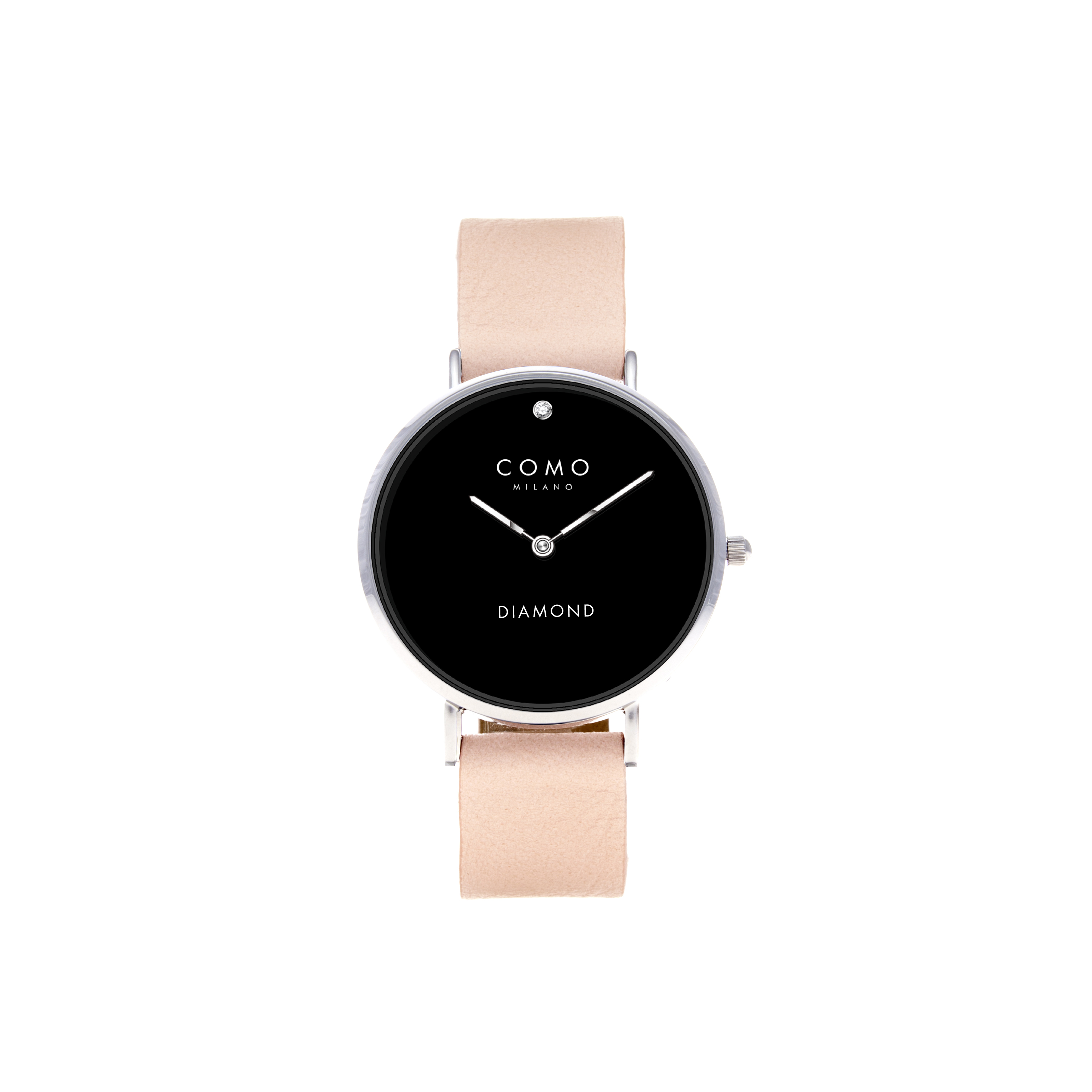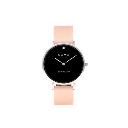 Round case 36 mm in S/S with a "Made in Italy" pastel pink genuine leather strap and a diamond at 12