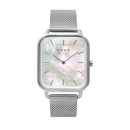 Square case, white MOP dial, 32X28mm in S/S with mesh, square collection