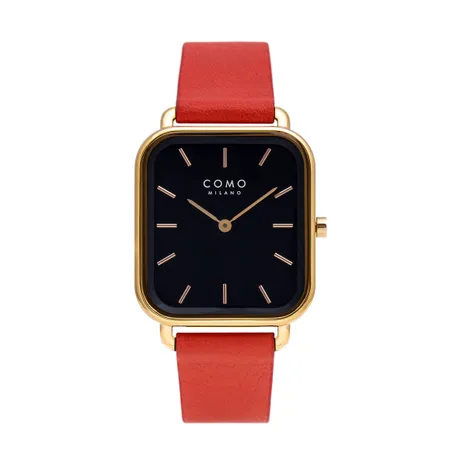 Square case 32X28 mm in S/S with IP Gold, with "Made in Italy" genuine leather red strap